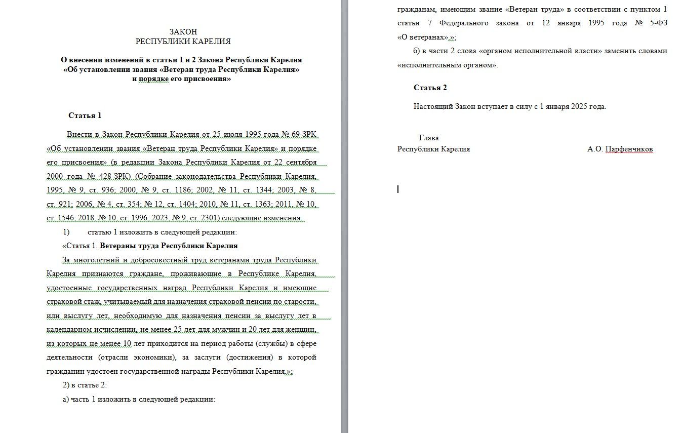 Усатенко, которому сейчас 23 года, а значит до звания ветерана ему очень далеко, напомнил, что сейчас любой житель Карелии может получить это звание, если он имеет трудовой стаж – 35 лет мужчины (в том числе не менее 20 лет в Карелии), 30 лет женщины (не менее 15 лет в Карелии).