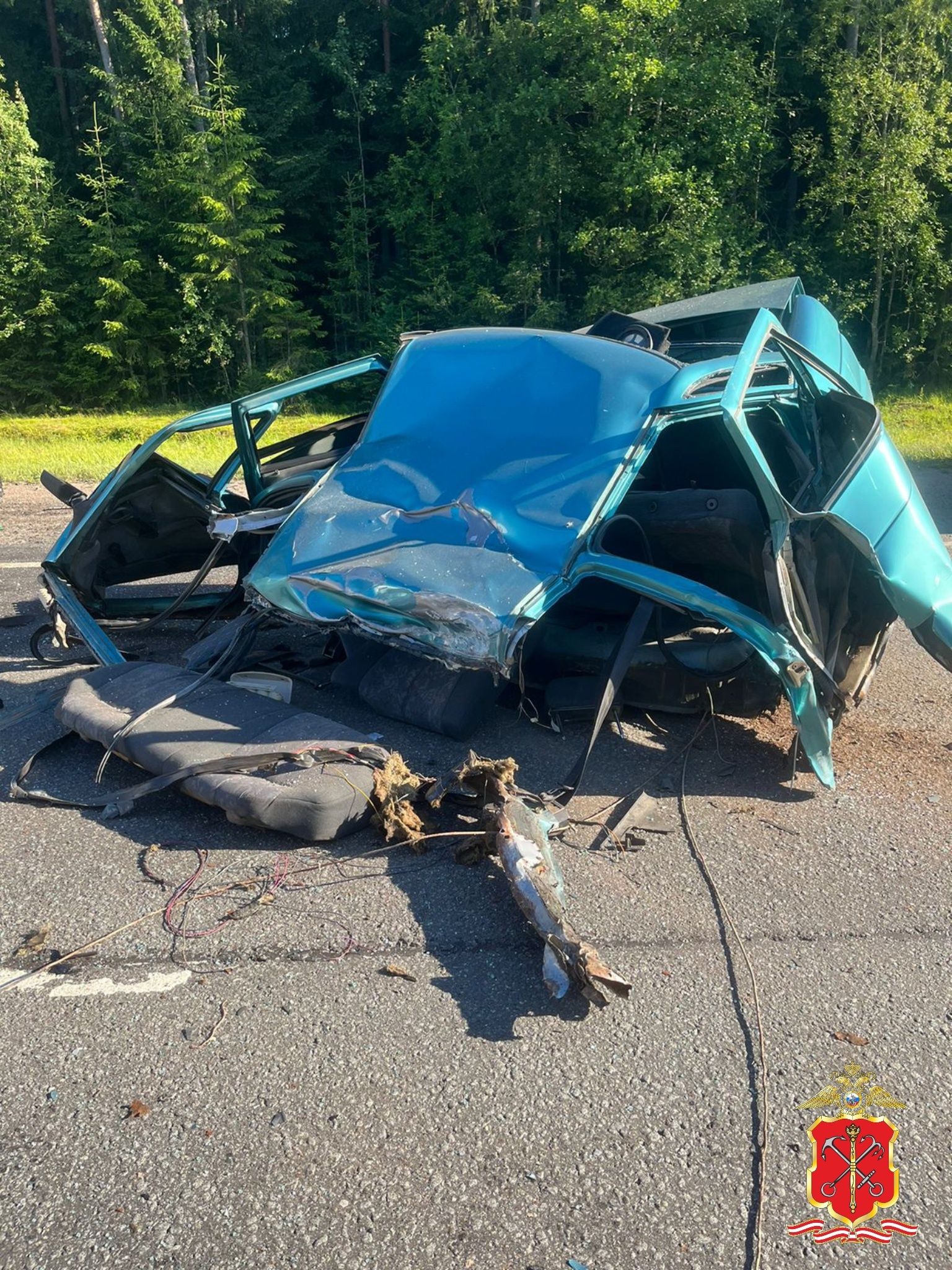 ДТП произошло 10 июля около 17:40 на 123-м километре автодороги «Нарва» в Кингисеппском районе Ленинградской области. По предварительной версии, 22-летняя жительница Ленобласти на «ВАЗ-21102» выехала на встречную полосу и врезалась в «Фольксваген Каравеллу» под управлением 45-летнего жителя Петрозаводска.