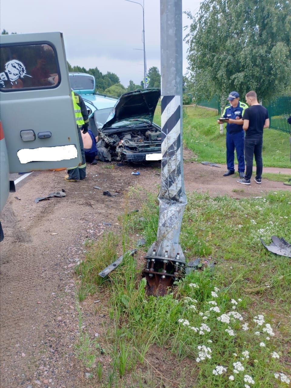Информация об аварии поступила спасателям в 06:28. В деревне Мегрега на улице Минина легковкушка врезалась в столб.