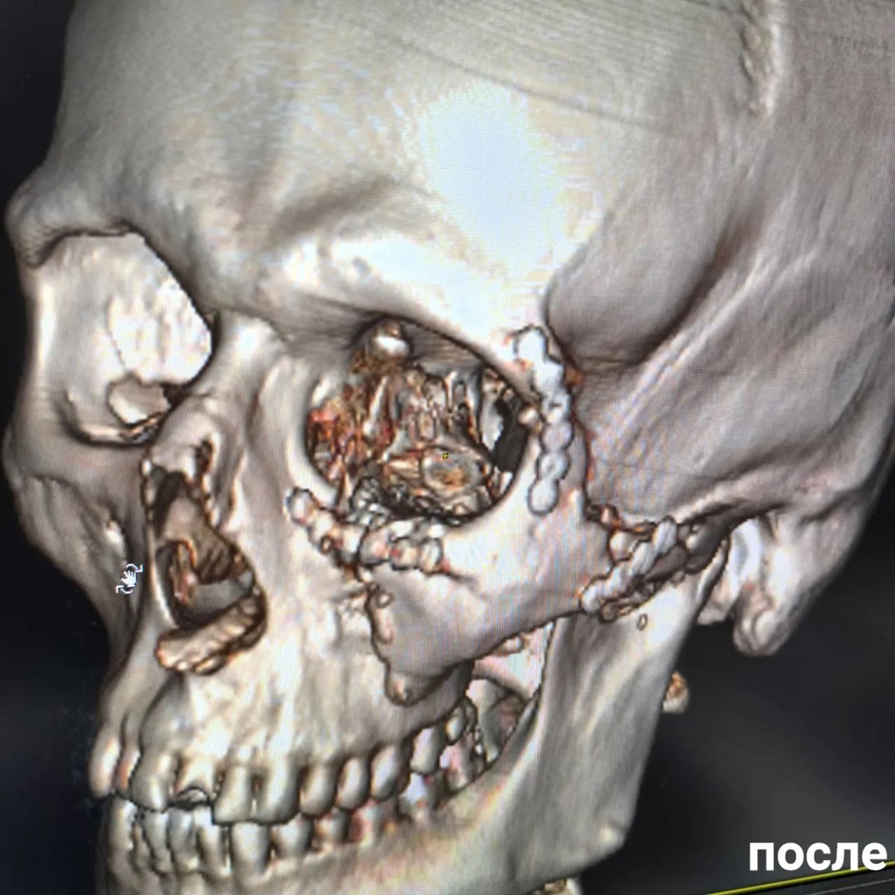 Пациенту провели реконструкцию лицевого скелета и пластику лица. Лечение и восстановление заняли несколько недель. В итоге у пациента полностью восстановились чувствительность, движение лица и зрение.