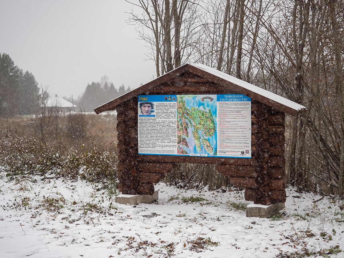 Неизвестные уничтожили один из десяти установленных в Заонежье стендов, рассказывающий об одной из самых необычных деревень Медвежьегорского района.