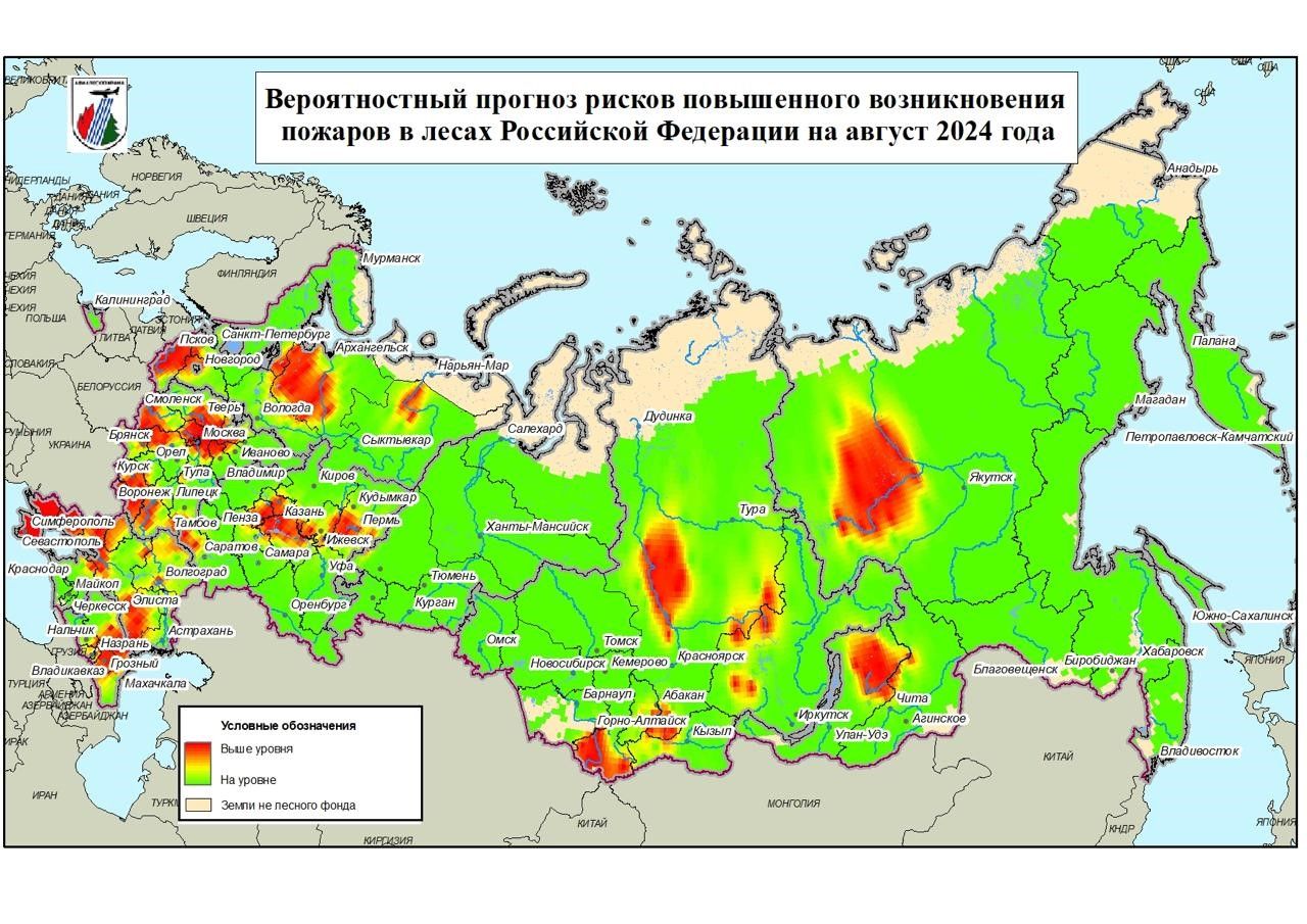 На основе данных Росгидромета и многолетних данных о горимости лесов специалистами Федеральной Авиалесоохраны разработан предварительный прогноз рисков ЧС по лесным пожарам на август.