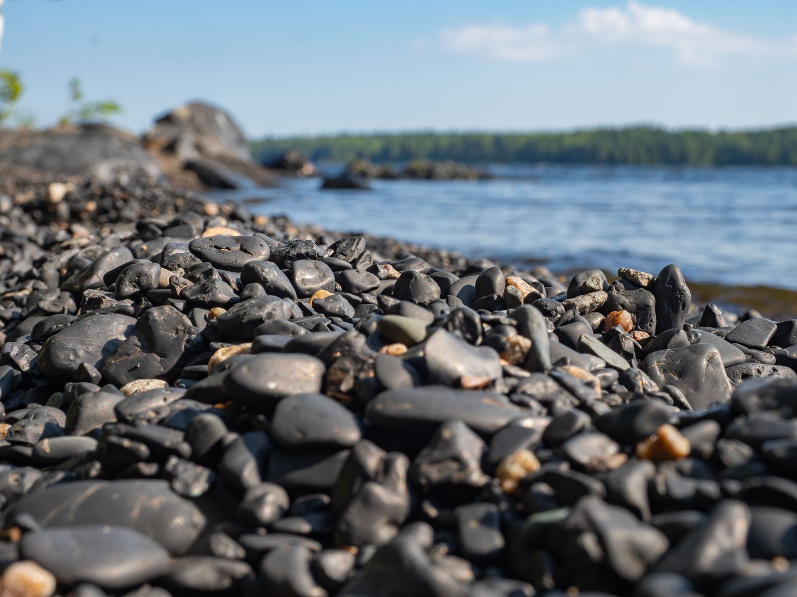 О существовании этого уникального пляжа на одном из островов Онежского озера знают единицы. Между тем, это, вполне возможно, единственный в мире такой выход шунгита на поверхность земли. Впрочем, говорят, что в том же Заонежье такой пляж не единственный.