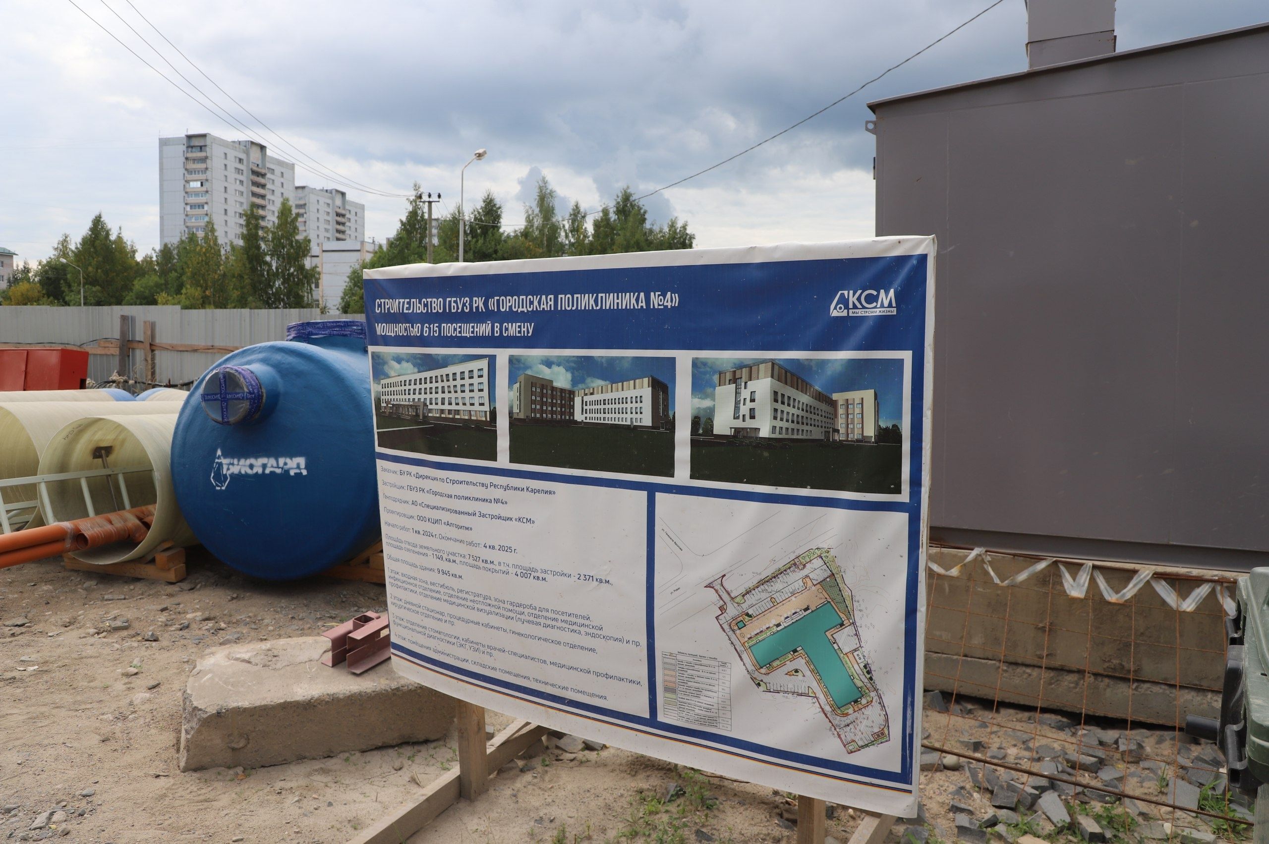 Новая 4-этажная поликлиника в микрорайоне Кукковка возводится карельской компанией АО «Специализированный Застройщик «КСМ» по нацпроекту «Здравоохранение». На площади почти в 10 тысяч квадратных метров разместятся лаборатории, кабинеты диагностики и палаты дневного стационара. Поликлиника начнет принимать пациентов в 2026 году.