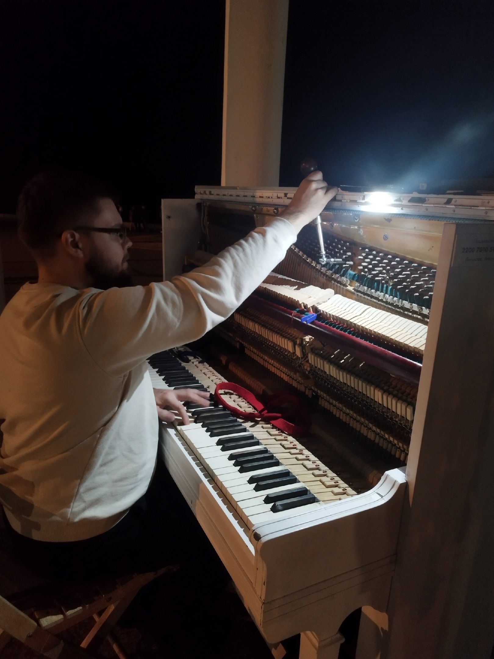 Отгонять и тех, и других помогал Антон Сергеев. Всю ночь он присутствовал на набережной. В результате мастеру удалось сделать из глухого и расстроенного пианино отлично звучащий инструмент с очень удобным механизмом.