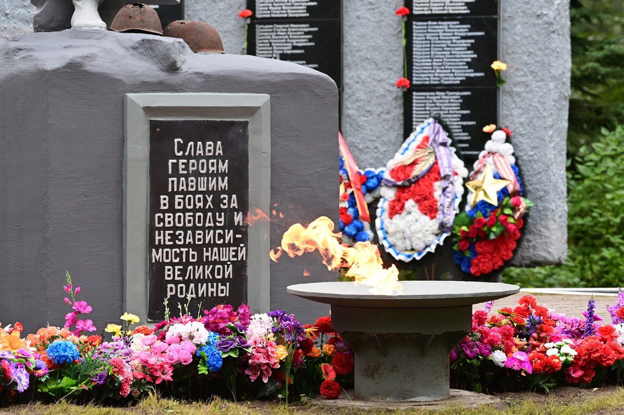 В память о героях, павших в боях за Родину, глава Карелии вместе с жителями возложил цветы к Вечному огню.