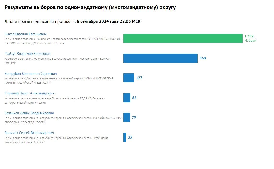 В Петрозаводске состоялись довыборы в Петрозаводский горсовет в избирательном округе №8 на Ключевой. Главным кандидатом заранее считался директор Онежского судостроительного-судоремонтного завода 70-летний Владимир Майзус. Недавно он вступил в «Единую Россию» при полной поддержке, если не сказать, кураторстве главы Карелии Артура Парфенчикова. Главный его конкурент — справедливорос Евгений Быков.