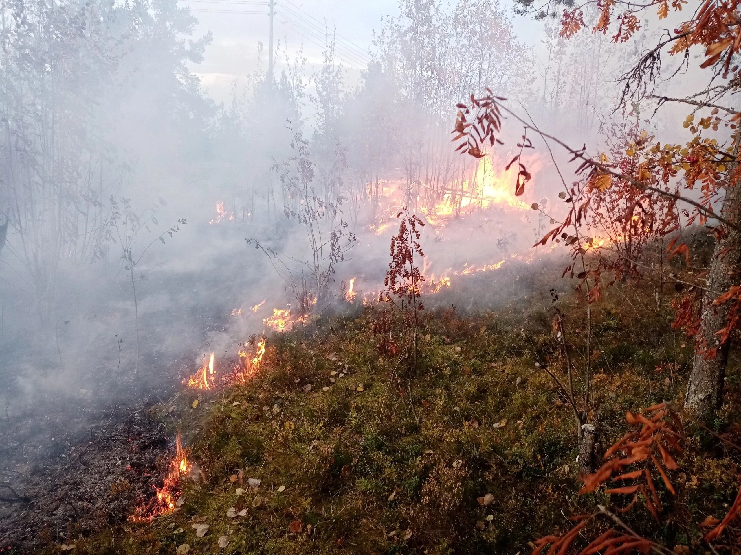 Информация о возгорании поступила на пульт дежурного в 18:19. На место выехали пожарные расчеты из частей №4 и №75. Пожар охватил открытую местность. Благодаря оперативным действиям пожарных огонь удалось быстро потушить.