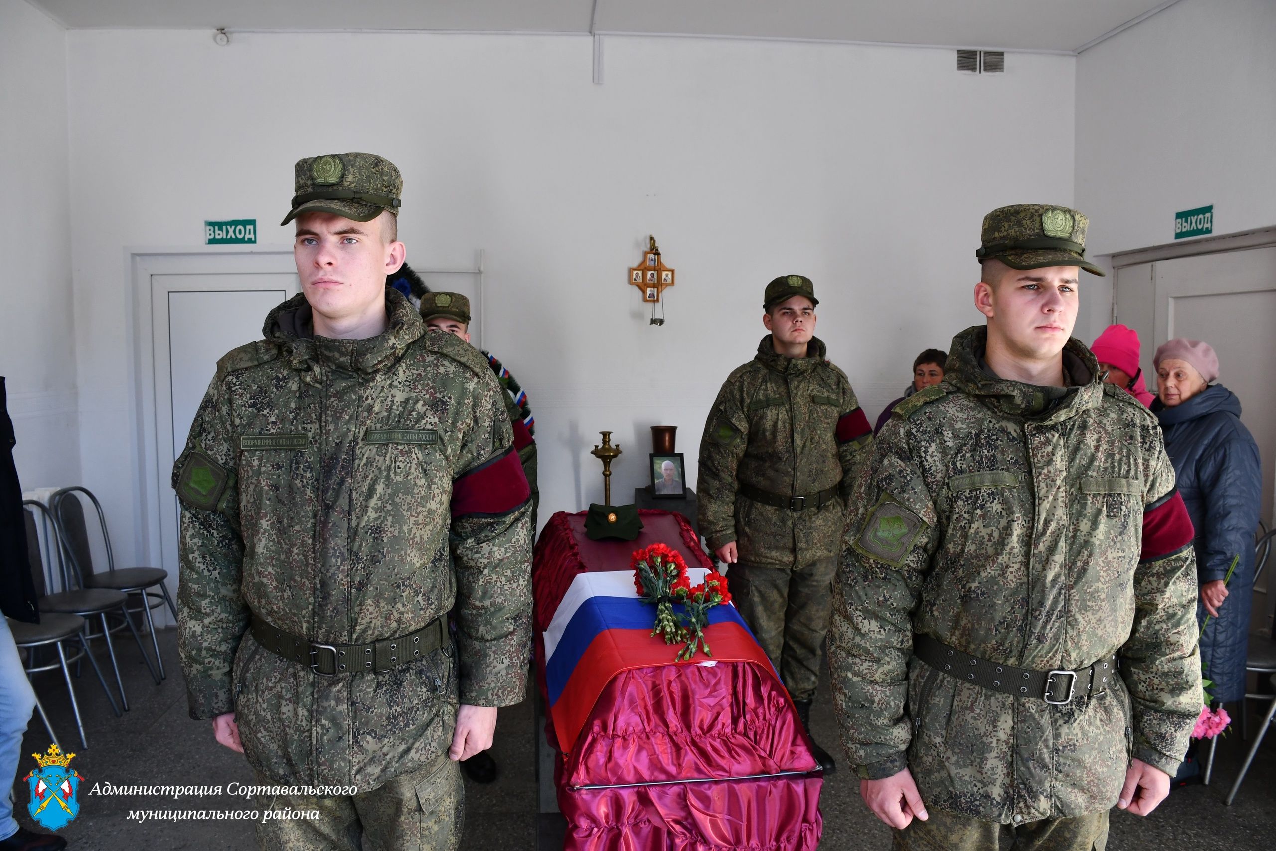 О церемонии прощания рассказывает паблик Сортавальского округа. Церемония и митинг состоялись у городского траурного зала. У гроба с телом погибшего воина встал почётный воинский караул.