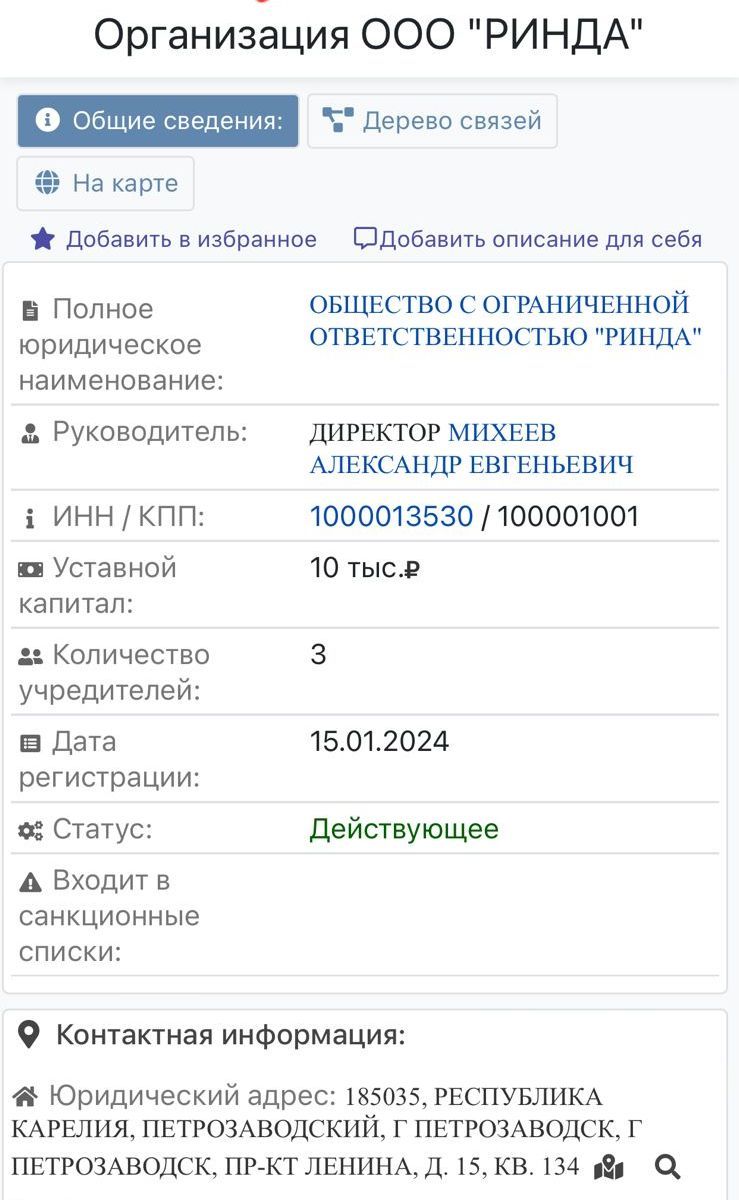 И это уже совсем другое юрлицо, а не то, с которым «воюют» люди. Директором и одним из учредителей в этой новой компании числится некто Александр Евгеньевич Михеев, а сама компания была создана в январе 2024 года. То есть это новый объект и новая фирма. И именно этой компании просто так досталось более 12 тысяч квадратных метров земли на живописном полуострове. Мы, кстати, не знаем, имеет ли отношение директор этой компании к известному предпринимателю Евгению Михееву. На сайтах, которые отслеживают бизнес-цепочки, такой связи не наблюдается.
