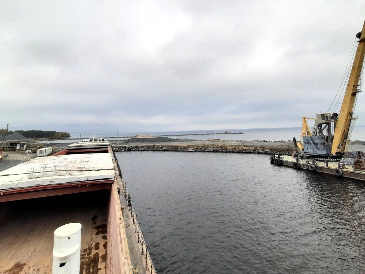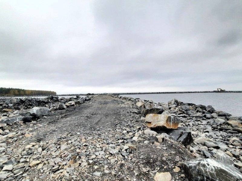 На объекте выполнено устройство основания причальной и ветрозащитной дамбы крупнообломочной породой (горной массой), продолжаются работы по устройству основания второй ветрозащитной дамбы.