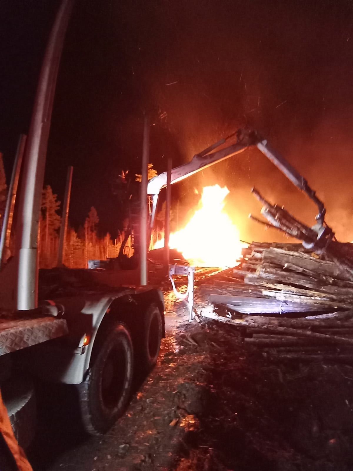 23 октября 2024 года около 14:45 поступило сообщение о крупном пожаре на лесозаготовительном предприятии вблизи деревни Войница, где горели порядка 1500 кубометров древесины.