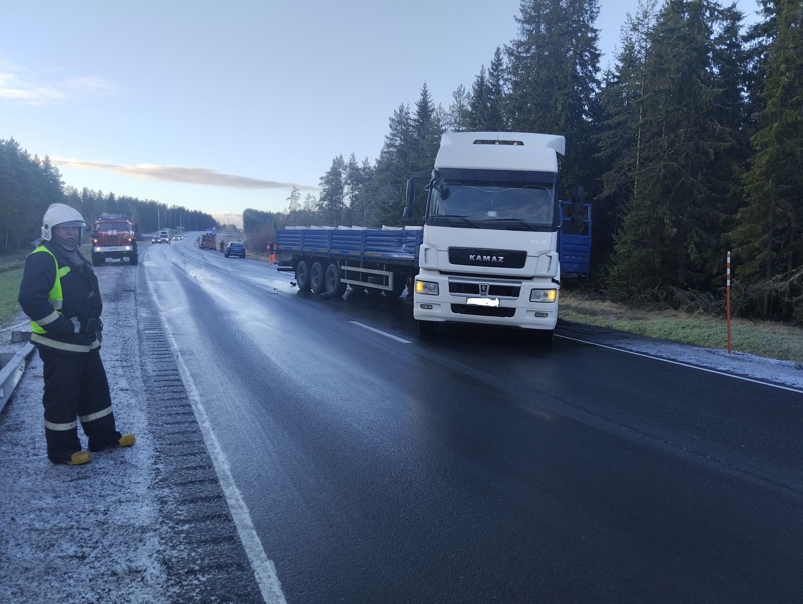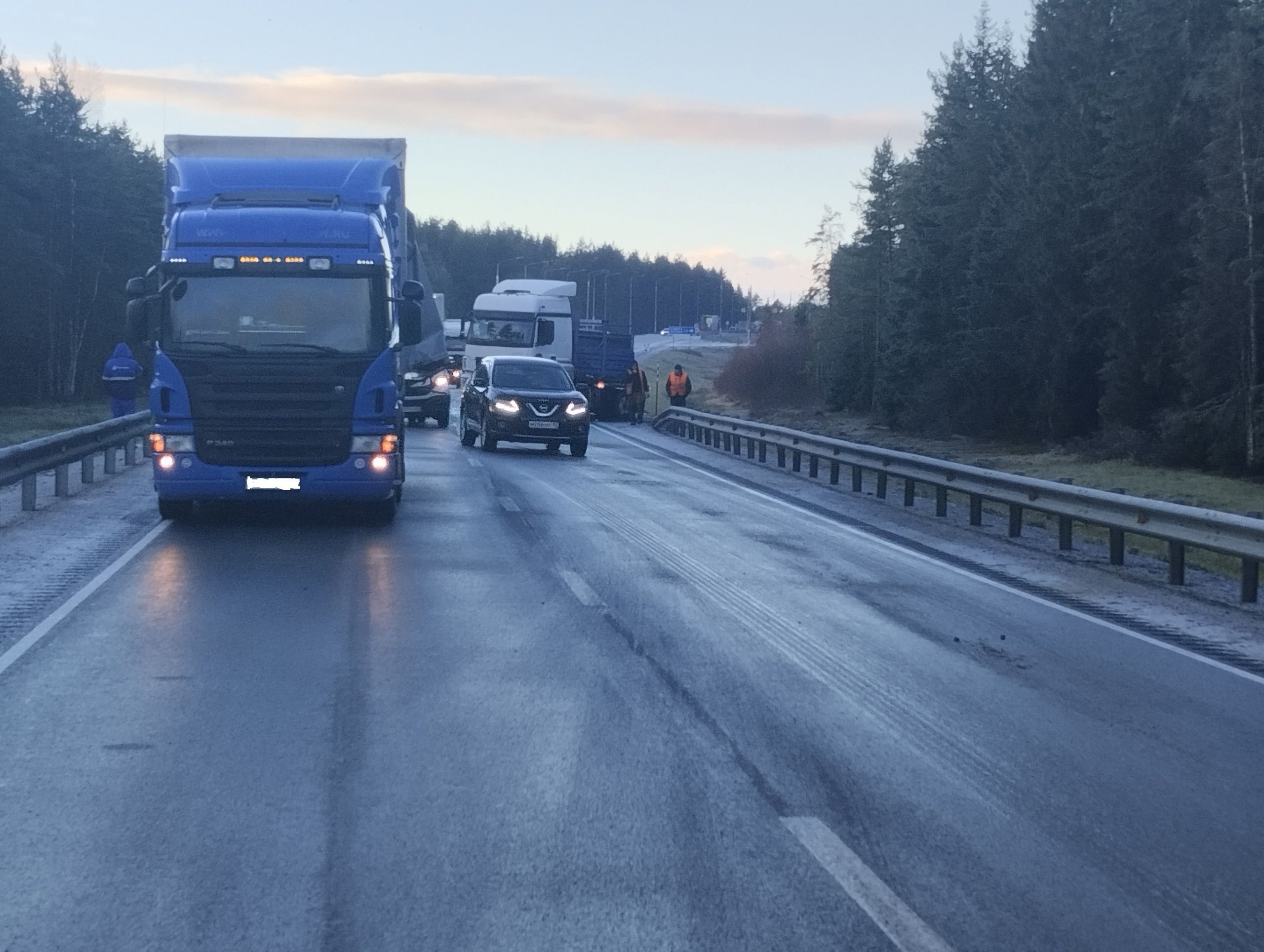Сегодня утром на трассе «Кола» в Олонецком районе произошло массовое ДТП с участием четырёх автомобилей, включая два грузовика. По информации местных спасателей, одна из машин вылетела в кювет.