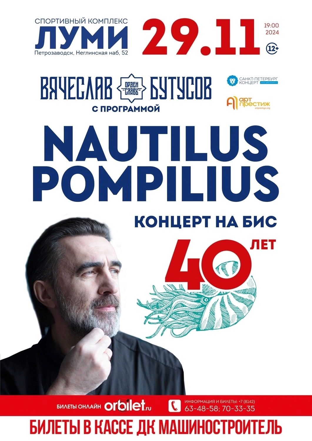 До встречи 29 ноября в Спортивном комплексе «Луми» на большом концерте Вячеслава Бутусова и «Ордена Славы», посвящённому легендарной группе Nautilus Pompilius.
