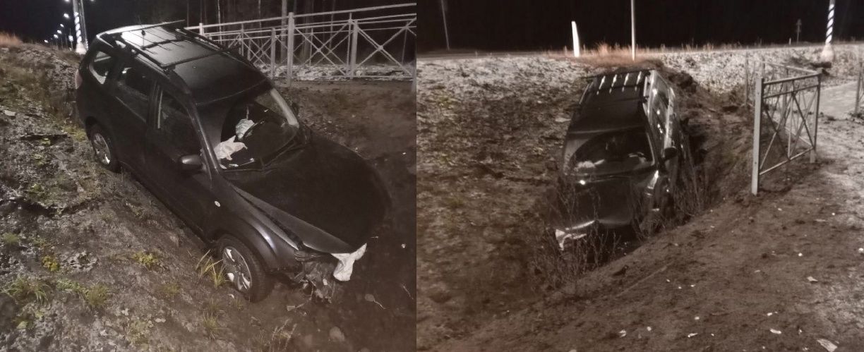 В 7:45 в Прионежском районе, у села Деревянное, 23-летняя женщина-водитель Honda Civic не справилась с управлением при прохождении поворота, и автомобиль опрокинулся в кювет. Травмы получил 22-летний пассажир.