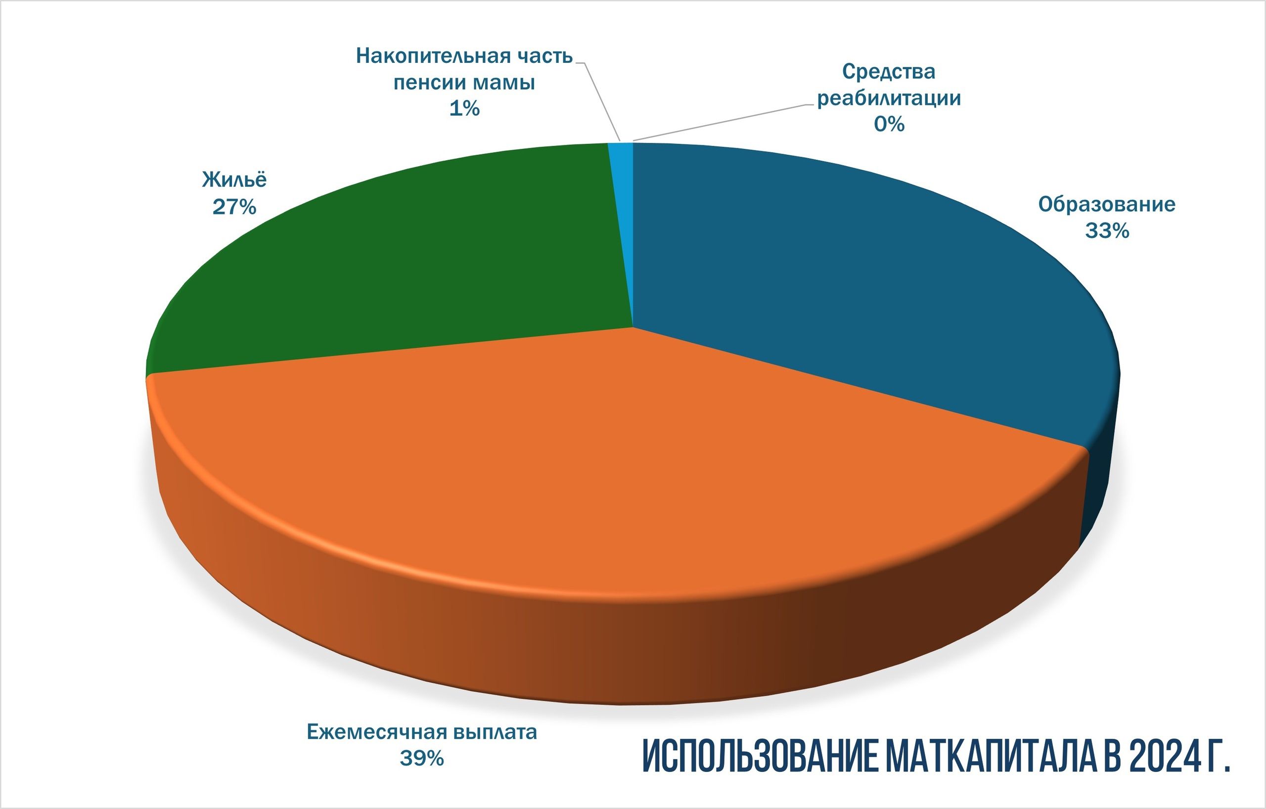 Всего в этом году поступило 6800 заявлений на распоряжение средствами маткапитала. 33% семей направили деньги именно на образование, 38% — на ежемесячную выплату, на улучшение жилищных условий — 27%.