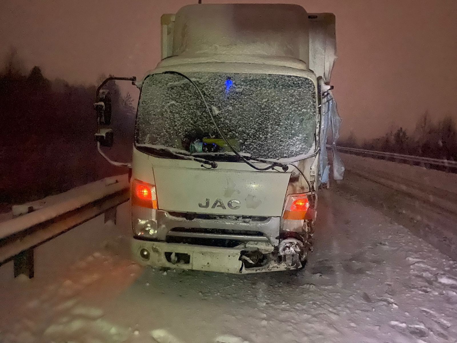 Первая авария произошла около 02:00 часов ночи на 432 км автодороги «Кола». Столкнулись микроавтобус Ford Transit и фургон JAC. В результате аварии 51-летний водитель микроавтобуса получил травмы. Мужчину госпитализировали.