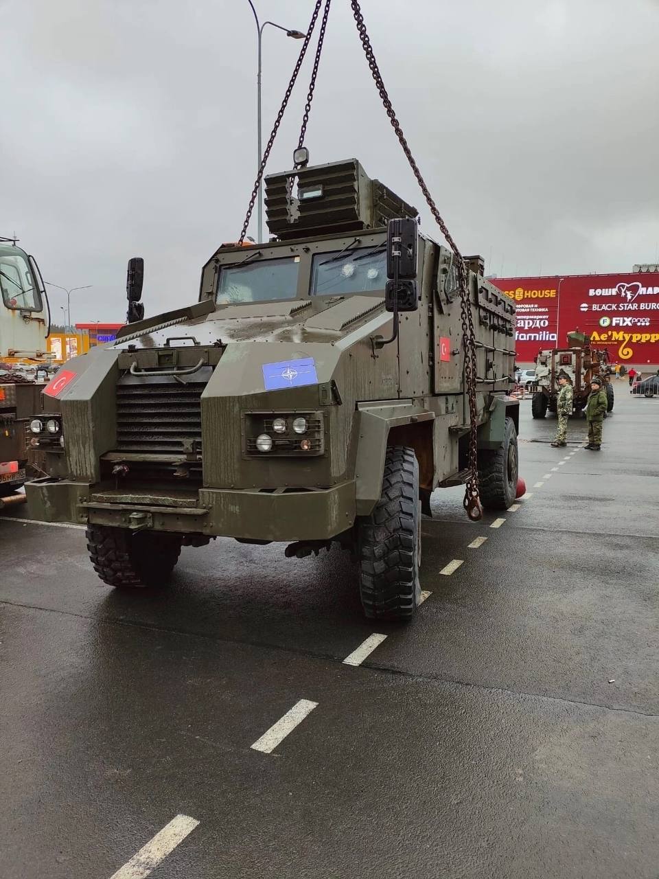 Около ТРК «Лотос Plaza» выставили трофейную военную технику стран НАТО.