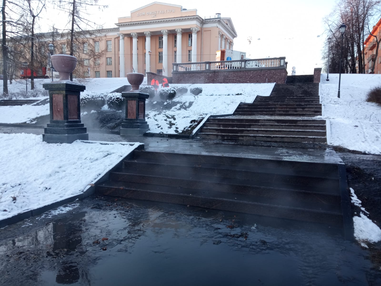 Учитывая морозную погоду, спуск к озеру на улице Свердлова сегодня лучше избегать.