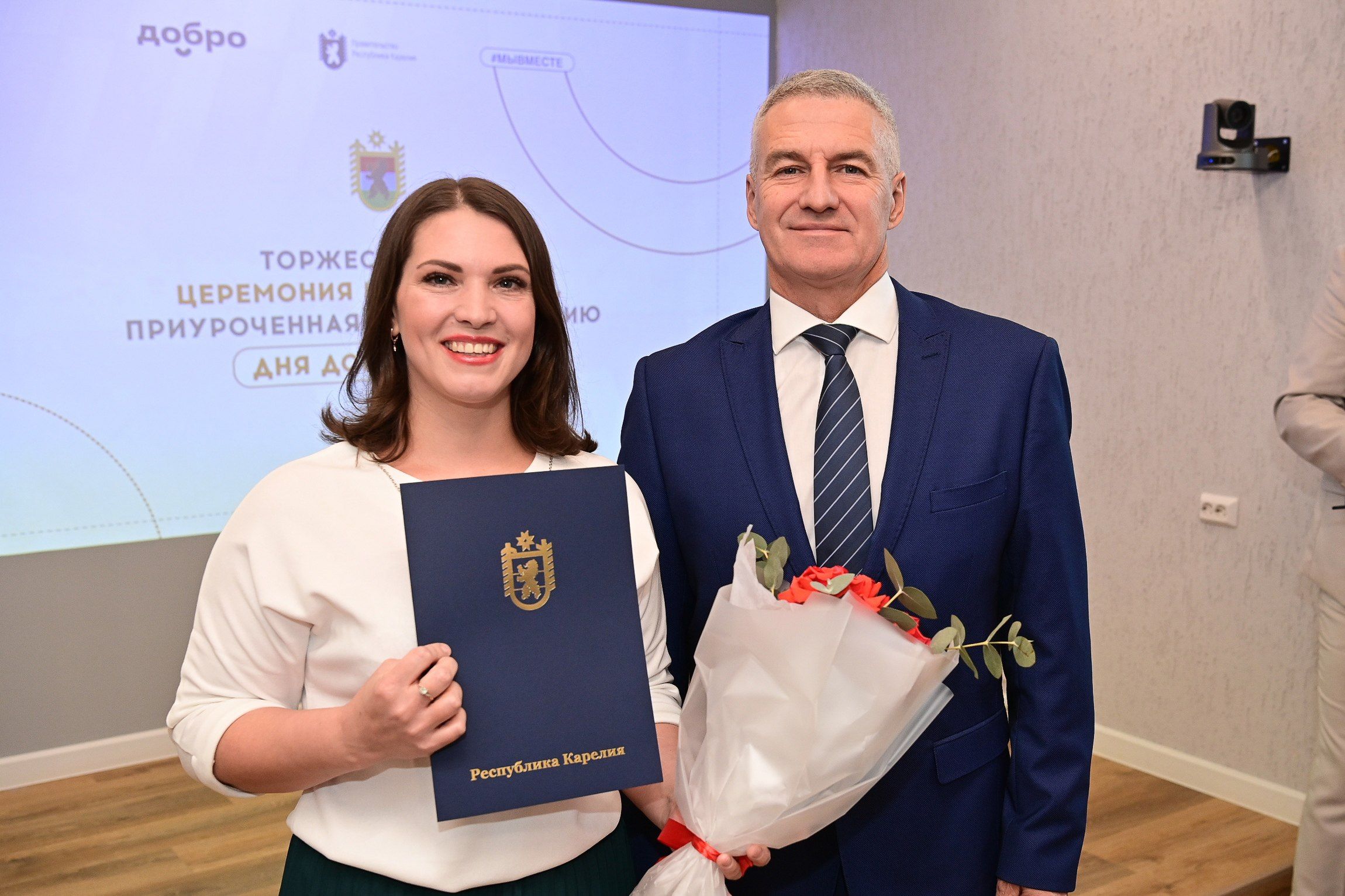 За личный вклад в развитие добровольчества на территории республики Почетными грамотами правительства Карелии награждены 11 жителей региона. За активную добровольческую деятельность на территории республики 22 добровольцам вручили Благодарственные письма главы Карелии. Почетного знака Главы Карелии «За вклад в развитие Республики Карелия» удостоена Юлия Филиппова, президент Благотворительного Фонда имени Арины Тубис.