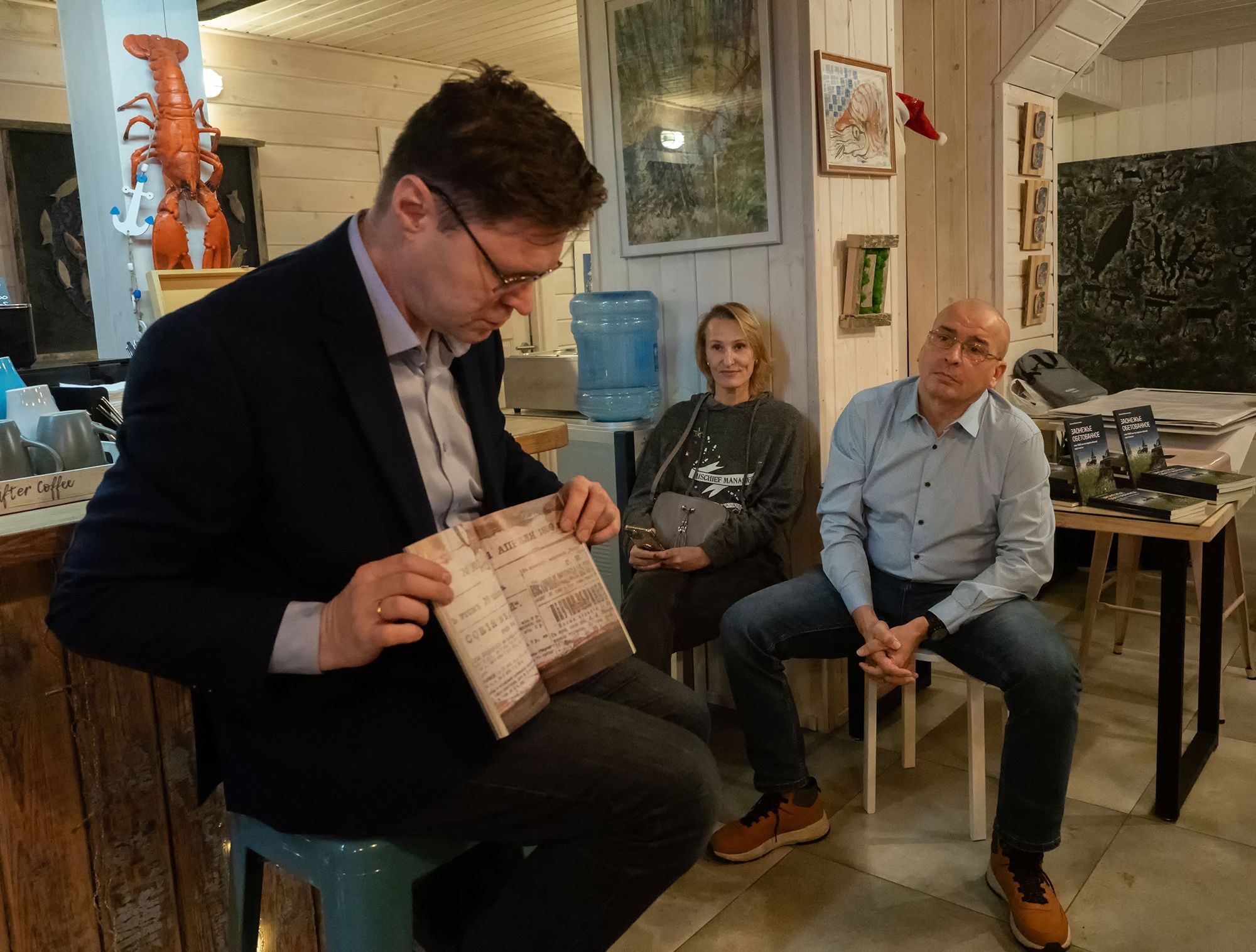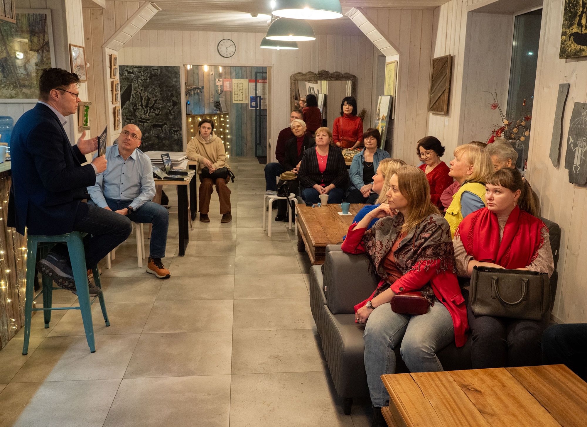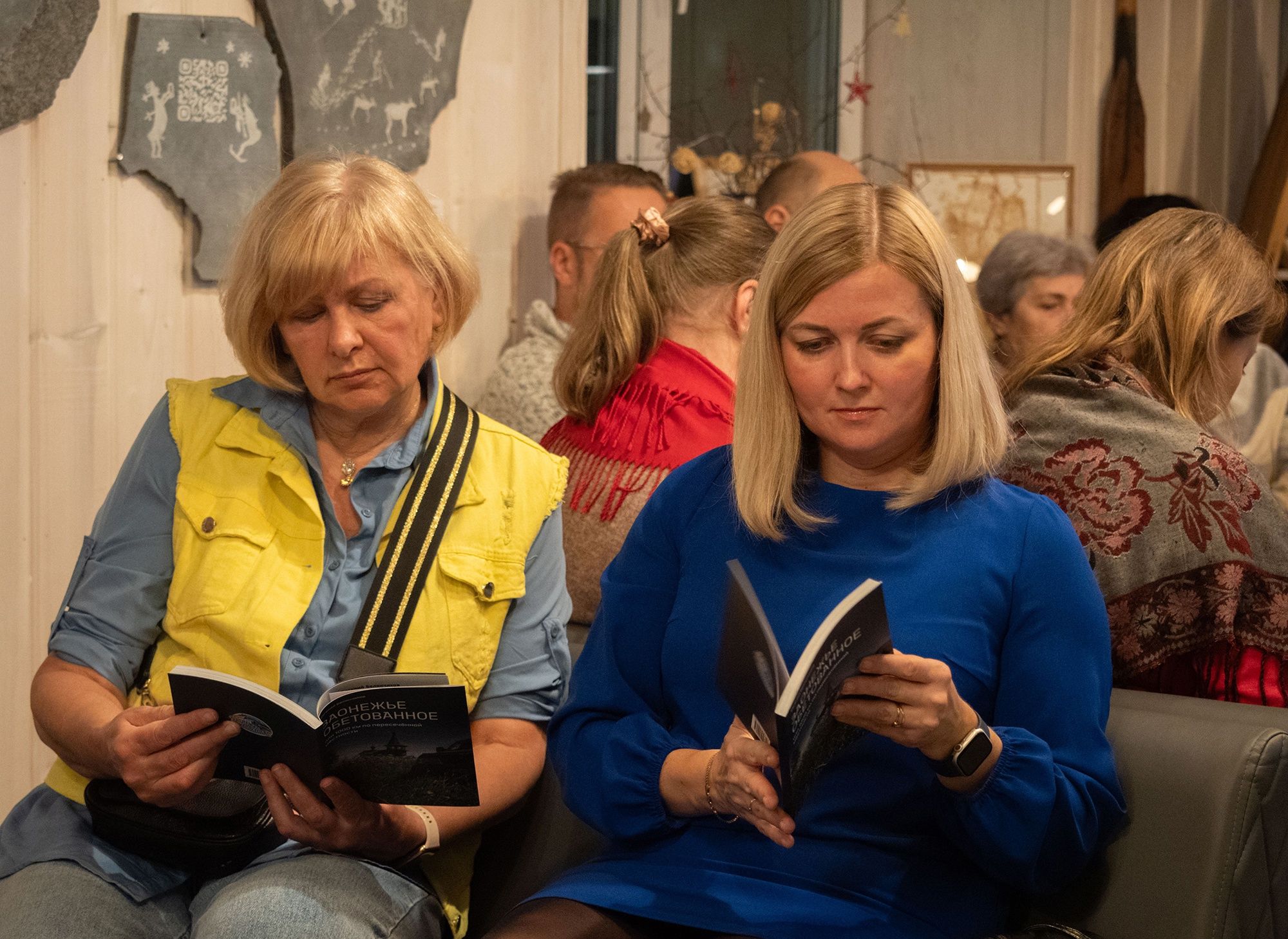 На встречу с авторами 6 декабря пришли как герои первой книги, так и герои новых историй. Евгений Белянчиков, который в день презентации опубликовал первую главу новых историй, рассказал об идее нового проекта, в который войдет более 15 историй из Кижской волости.