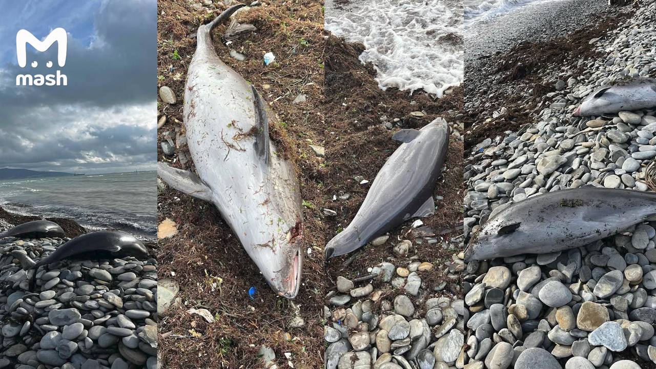 Об этом рассказывает и показывает Mash. Так, первые восемь оказались в Алексине под Новороссийском. Шестеро — на берегу, двое — в воде. Ещё три старых трупа были на Бугазской косе, в селе Сукко и в Варваровке. Эксперты осмотрели только пять дельфинов, в том числе одного дельфиненка. Остальных штормом унесло в море. На всех, кроме одного, нет следов нефтепродукта. Предполагается, что причиной смерти стала интоксикация от паров топлива или отравленная рыба. Заключение дадут специалисты. По словам экспертов, такой выброс морских существ можно считать массовым.