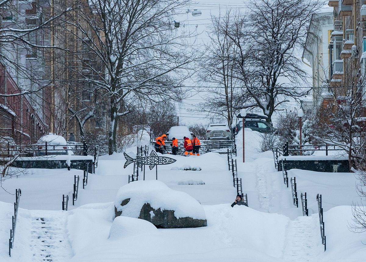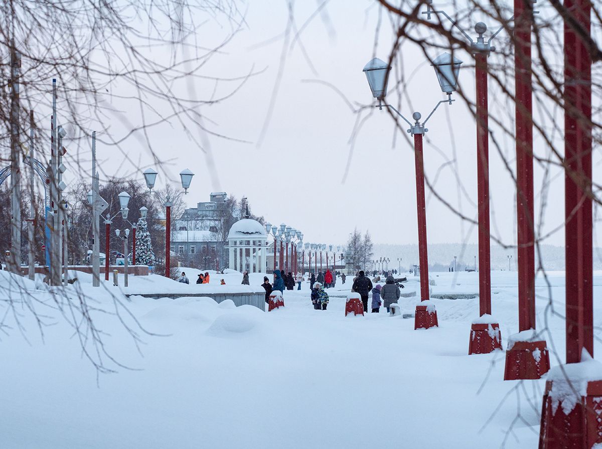 Долгожданный снегопад радует жителей Карелии — и детей, и взрослых. Люди лепят снеговиков, катаются с горок, играют в снежки, просто гуляют.