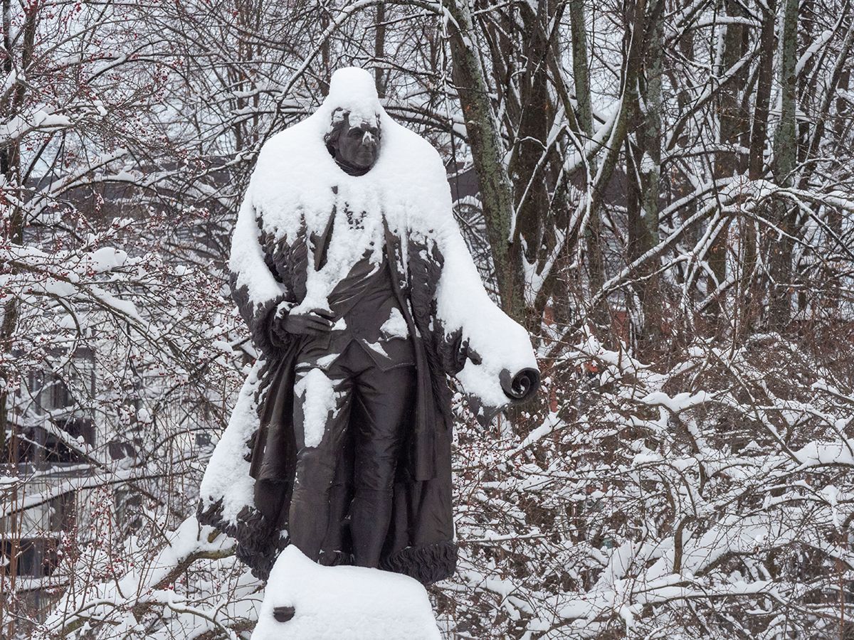 Прогулялся по заснеженной столице Карелии и фотограф Игорь Подгорный. Приодевшиеся в пушистый наряд скульптуры и деревья выглядят очень празднично.