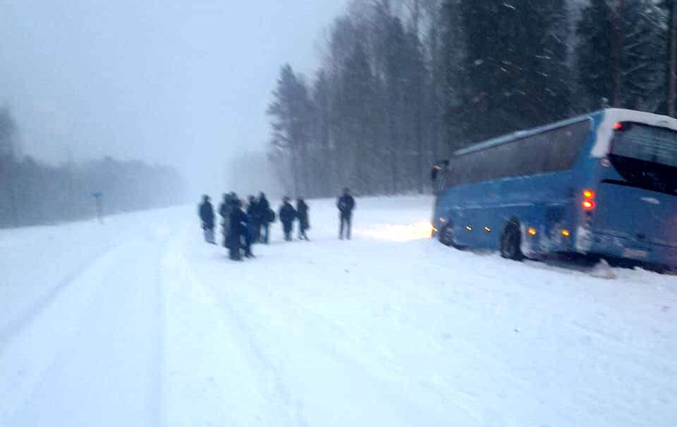 Как рассказали в Госкомитете Карелии по ОЖ и БН, 12 января в 9:27 на пульт дежурному диспетчерской службы системы 112 поступил звонок о ДТП с участием автобуса. Место происшествия – недалеко от села Шёлтозера Прионежского района. Произошел съезд автобуса на обочину из-за плохих погодных условий. Появилась угроза опрокидывания автобуса. В автобусе находилось 12 человек и водитель. Пассажиры самостоятельно покинули автобус.