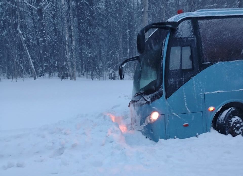 Как уточнили в отряде противопожарной службы Прионежского района, автобус съехал в кювет в 5 километрах от села Шелтозеро. Прибывшим к месту происшествия пожарным понадобилось более часа, чтобы совместными усилиями с помощью лопат и пожарной техники вызволить автобус из снежного плена и стабилизировать его на дороге.
