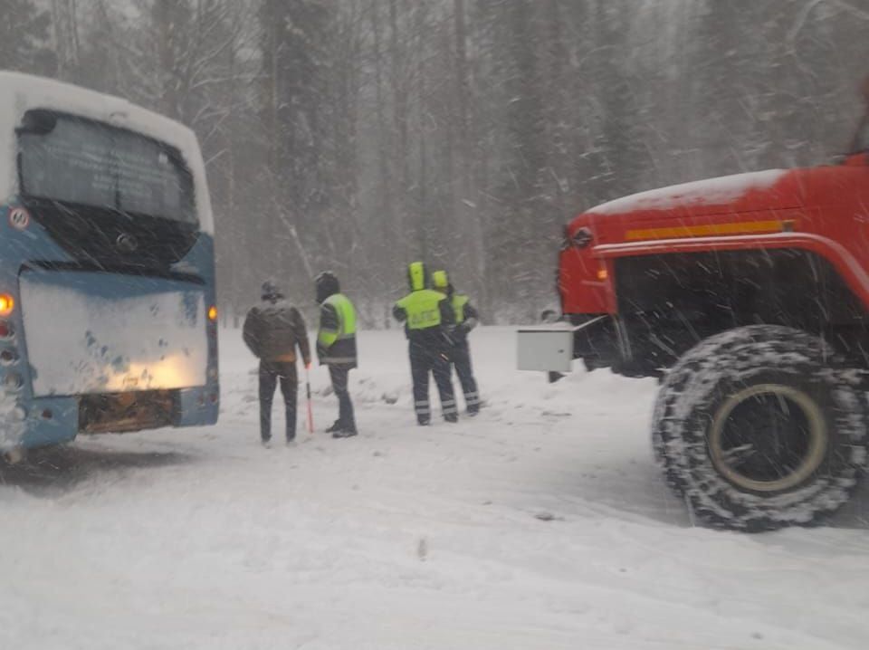 Как уточнили в отряде противопожарной службы Прионежского района, автобус съехал в кювет в 5 километрах от села Шелтозеро. Прибывшим к месту происшествия пожарным понадобилось более часа, чтобы совместными усилиями с помощью лопат и пожарной техники вызволить автобус из снежного плена и стабилизировать его на дороге.