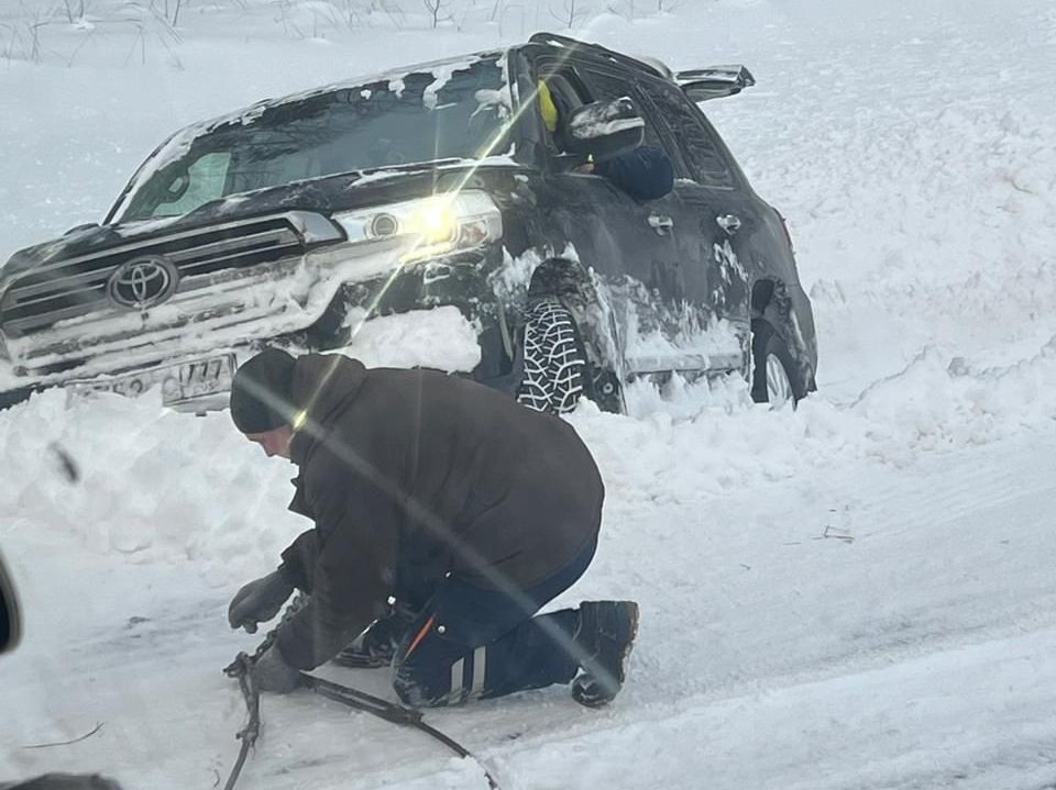 Связи почти нет, на многие километры в обе стороны не видно ни одной живой души. Но на выручку пришла снегоуборочная техника Кольского ДРСУ. Увидев горе-автомобиль, водитель КАМАЗа Александр Миккоев из Шуньги без лишних разговоров и очень быстро вытащил его с обочины. При этом от всякой «благодарности» категорически отказался, несмотря на настойчивость спасённых! Туристы благополучно продолжили свой путь.