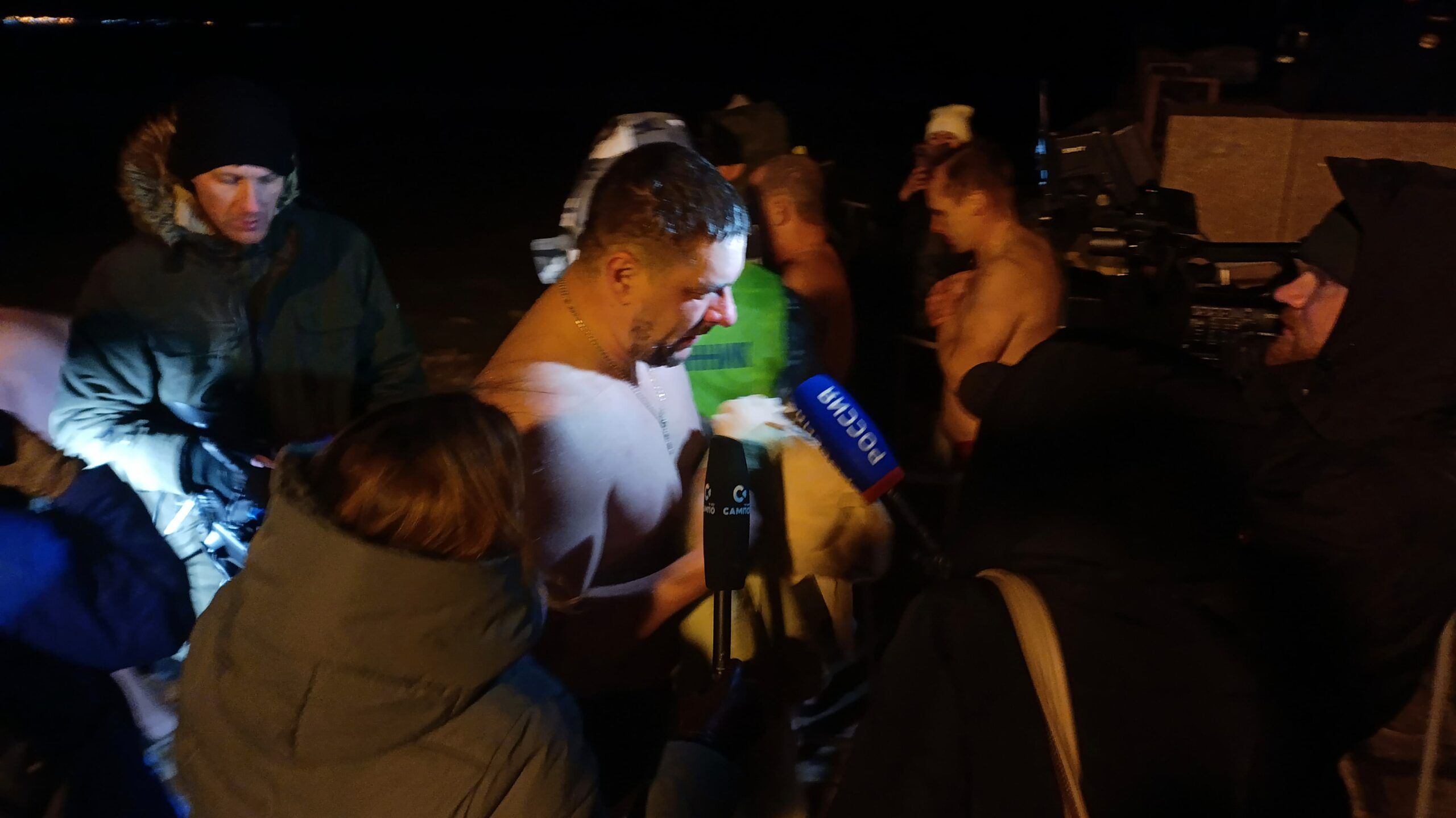 В 2025 году на большей части европейской территории России, в том числе и в Карелии, стоит теплая погода. Кроме того крещенские купания выпали на выходные. Поэтому такое количество людей вполне обоснованно. Все участники купаний проходили через рамку, проверялись сумки. К проруби пропускали по 20 человек, чтобы не было толчеи и окунувшиеся могли согреться после омовения в шатре. Людей просили не спешить и в целом напоминали правила безопасности.