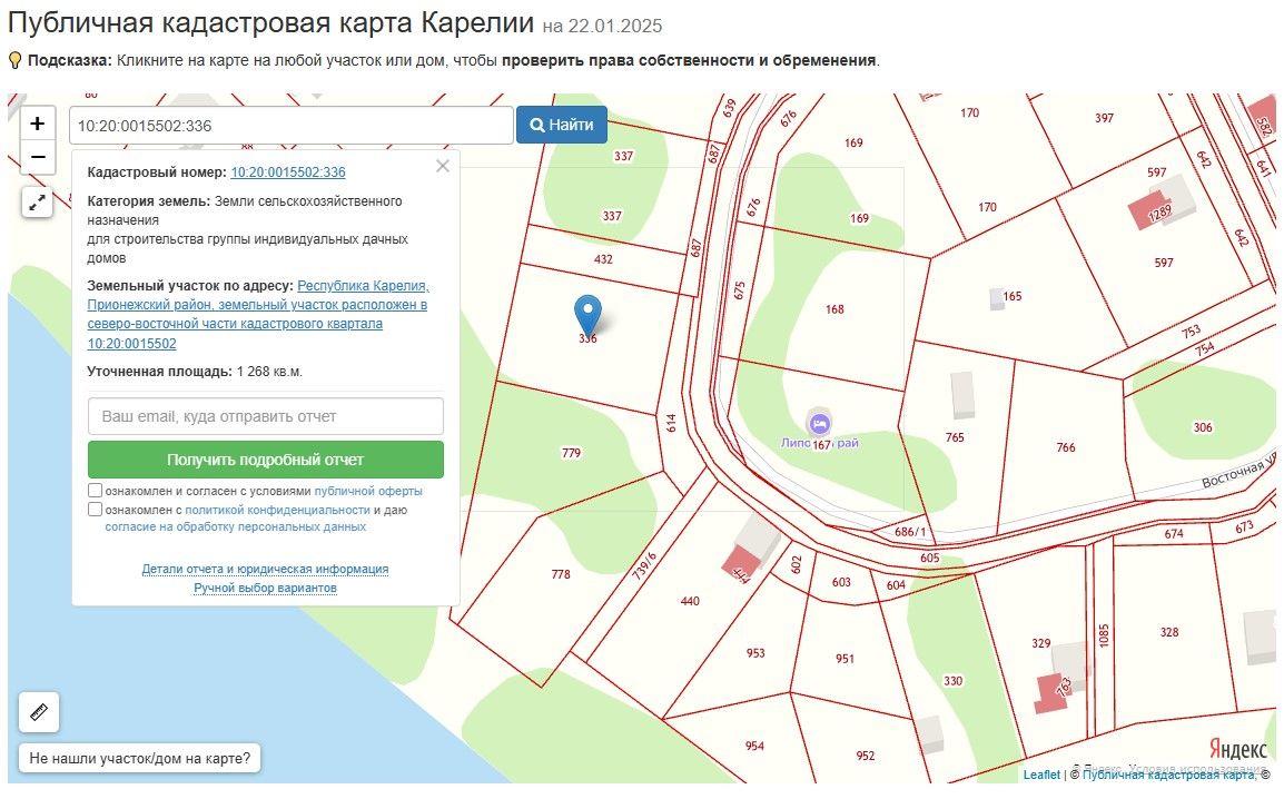 На этот раз в центре внимания уже другие участки – их всего четыре. И все они точно также расположились среди домов. На публичной кадастровой карте видно, что участки с номерами 10:20:0015502:336, 10:20:0015502:614, 10:20:0015502:778, 10:20:0015502:779 тоже, как и «Тало Ринда», расположены среди дач.