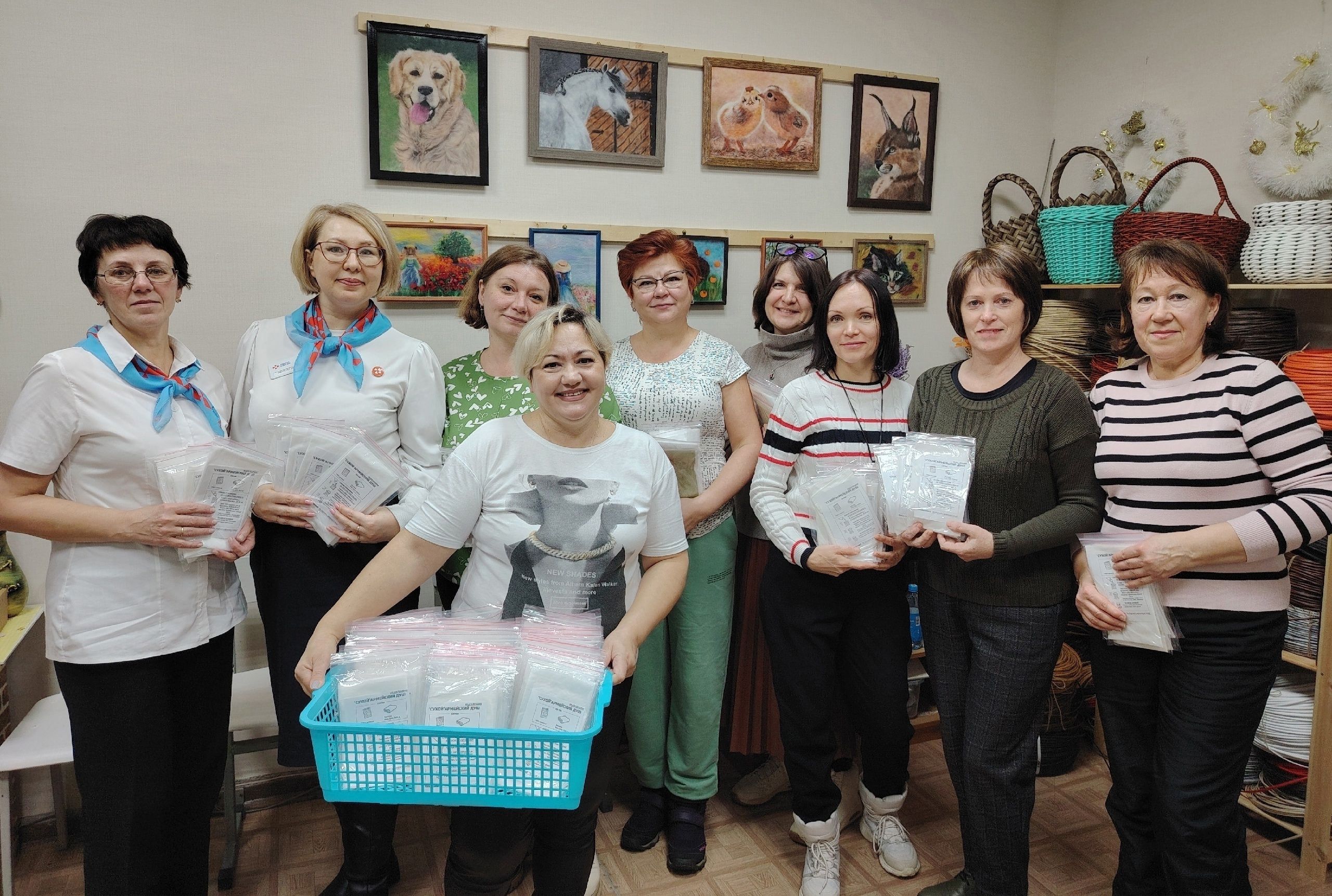 На первой в 2025 году встрече в Женском клубе «Вдохновение» в Кадровом центре Кондопоги под руководством мастерицы Ольги Бразаускене женщины изготовили 90 индивидуальных пакетов сухого душа для наших бойцов — участников СВО.