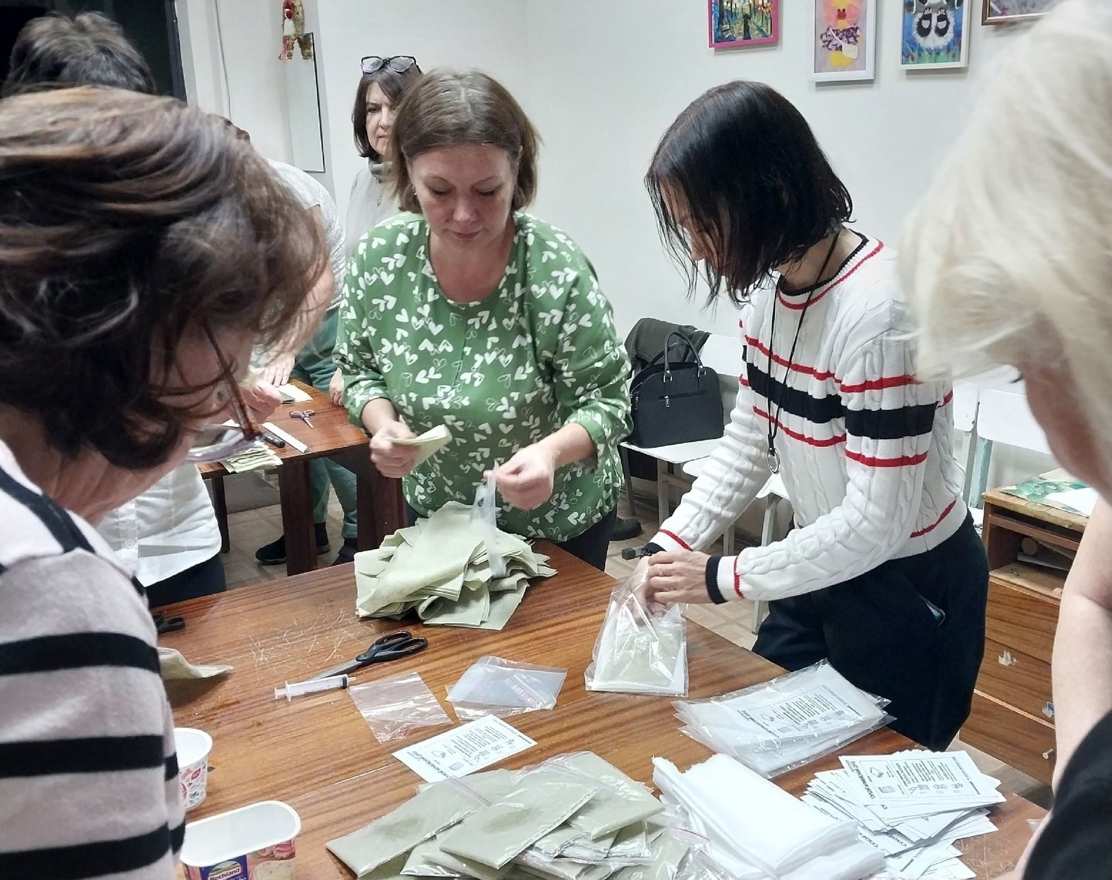 На первой в 2025 году встрече в Женском клубе «Вдохновение» в Кадровом центре Кондопоги под руководством мастерицы Ольги Бразаускене женщины изготовили 90 индивидуальных пакетов сухого душа для наших бойцов — участников СВО.