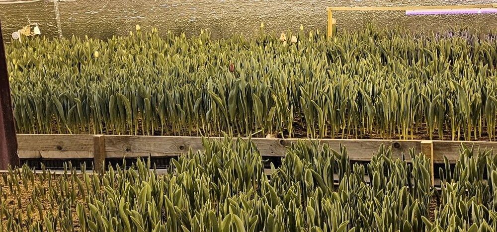 Всего в тепличном комплексе планируют вырастить на продажу примерно 10 тысяч тюльпанов.