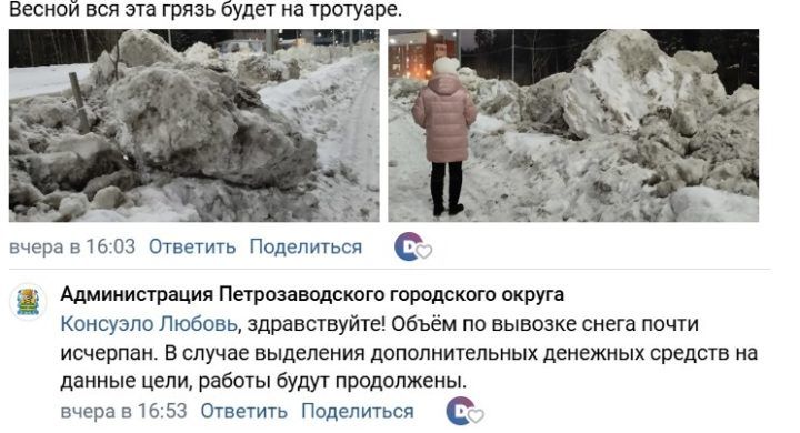 Весной вся эта грязь будет на тротуаре, — написала жительница карельской столицы Любовь.