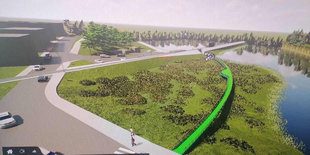 Проектом предусмотрено строительство перехода под ж/д мостом (платформа «Сортавала –Центр»). Деревянный тротуар на винтовых сваях свяжет набережную с парком. Также предусмотрены работы по благоустройству: очистка части акватории залива от водорослей и растительности.