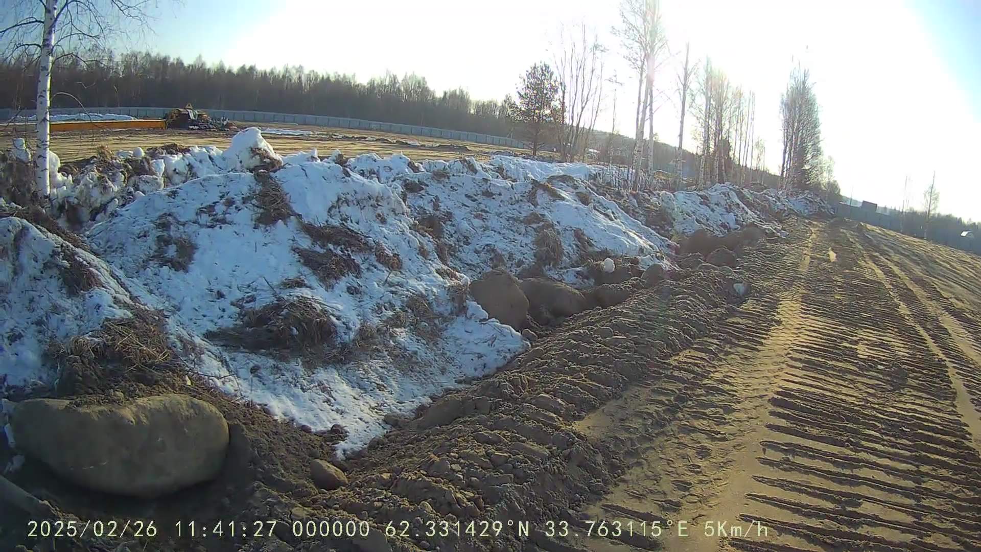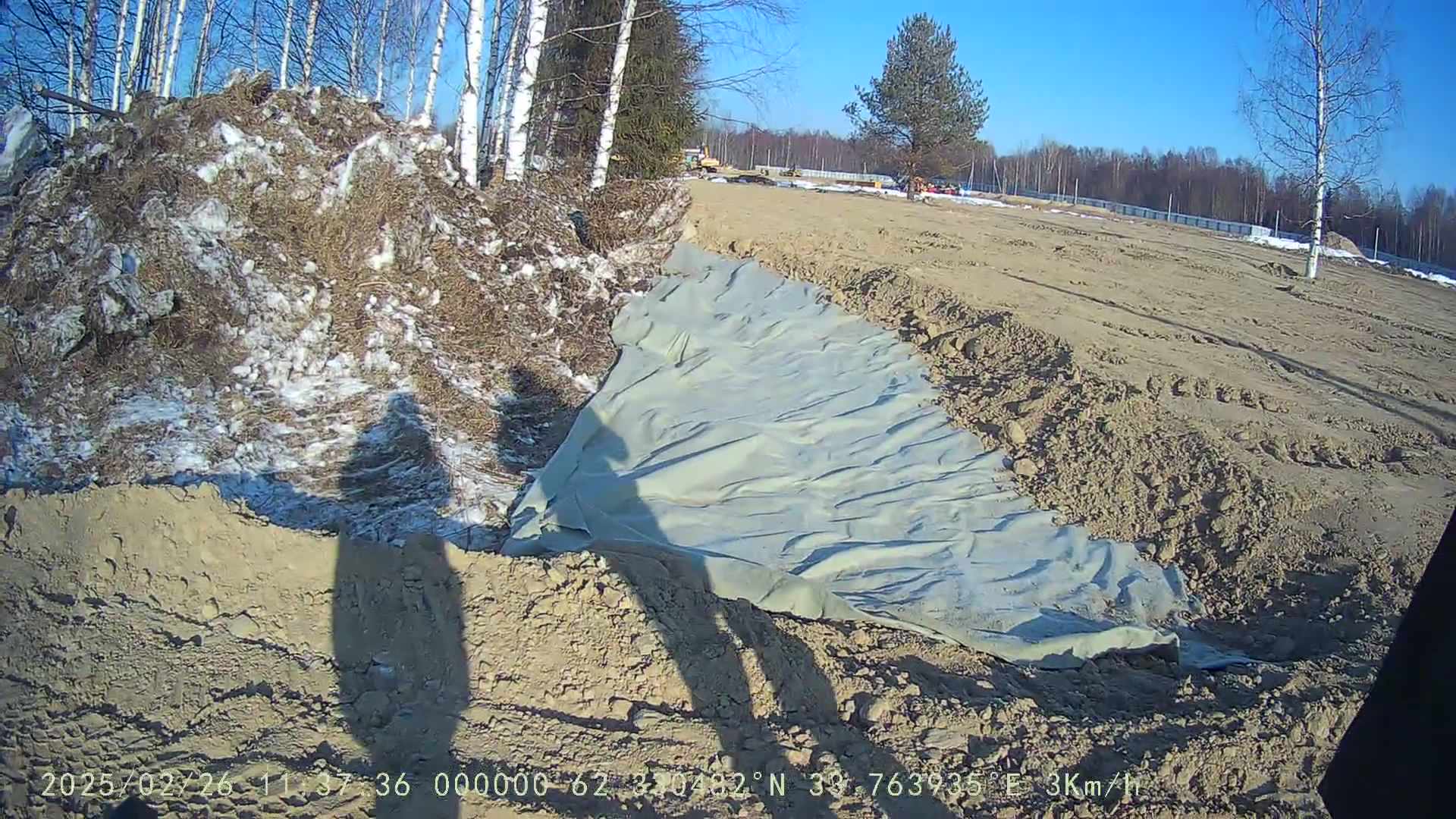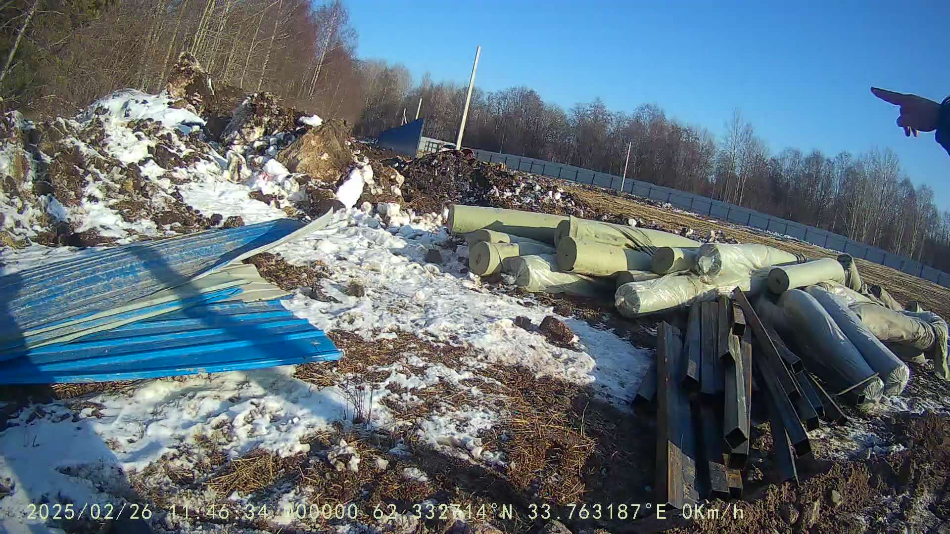 Установлено повреждение плодородного слоя почвы в результате работы тяжелой техники (трактора, бульдозера, грузовики и др.). На участке песок, отходы производственной деятельности, а также оборудование и строительные материалы (железобетонные столбы, фрагменты труб, железных листов, железобетонная плита, рулоны геотекстиля и др.).