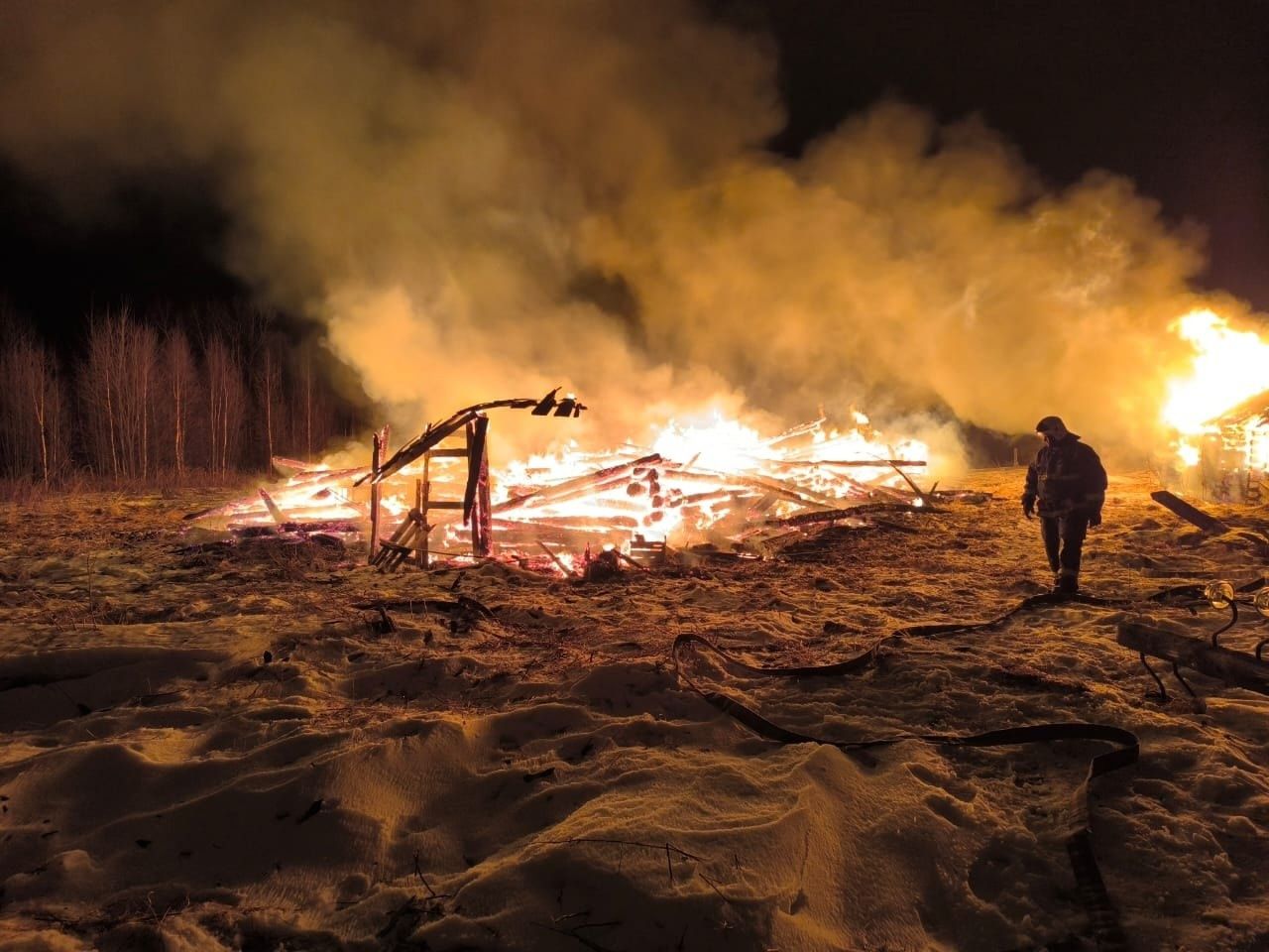 На место происшествия прибыли 6 пожарных из ПЧ-22 и 2 добровольца. Для тушения огня использовались две мотопомпы, а воду забирали из реки Кемь, расположенной в 600 метрах от здания. Пожарным удалось ликвидировать открытое горение к 05:10 утра. Обошлось без пострадавших, но здания практически полностью уничтожены огнем.