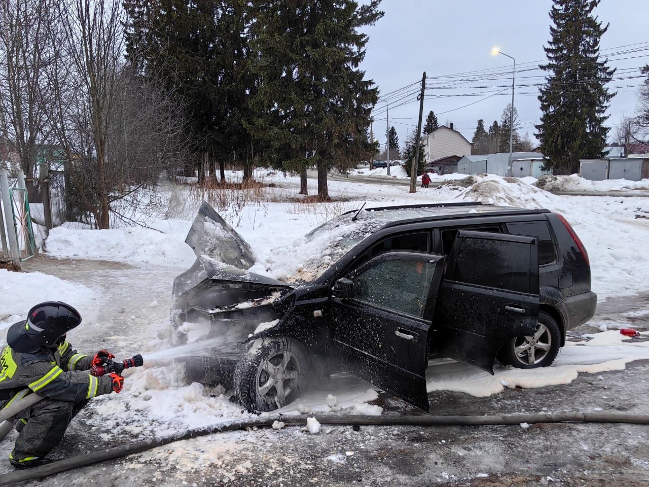 Информация о возгорании машины на улице Школьной поступила на пульт дежурного в 6:47. На место выехали пожарные из карельской столицы и поселка Мелиоративный. Выяснилось, что загорелся легковой автомобиль «Ниссан».