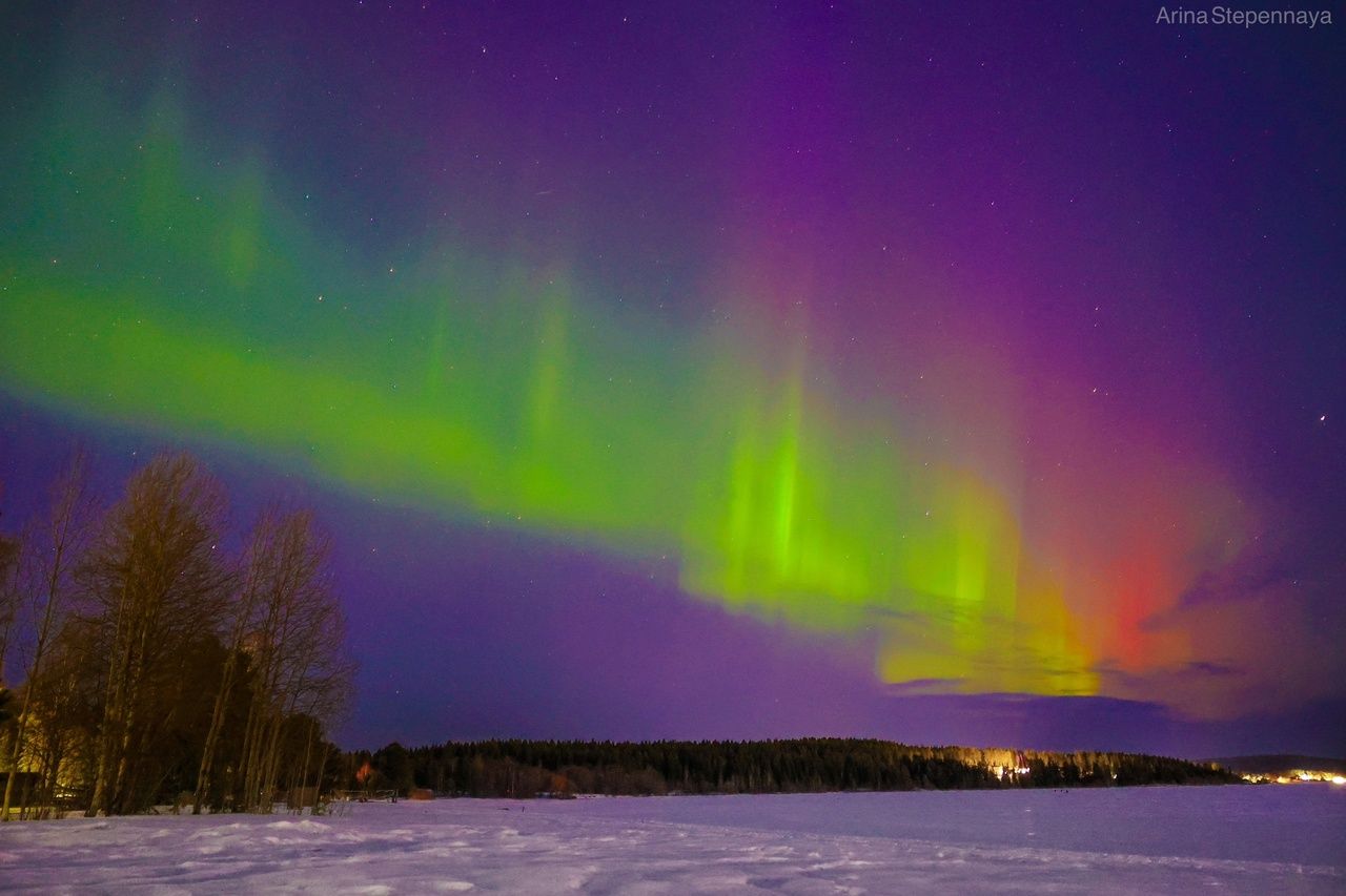 «Не забывайте поднимать глаза к небу», — советует Арина Степенная. Редактор нашего портала Евгений Белянчиков тоже смог запечатлеть это необыкновенное явление у Онежского озера.