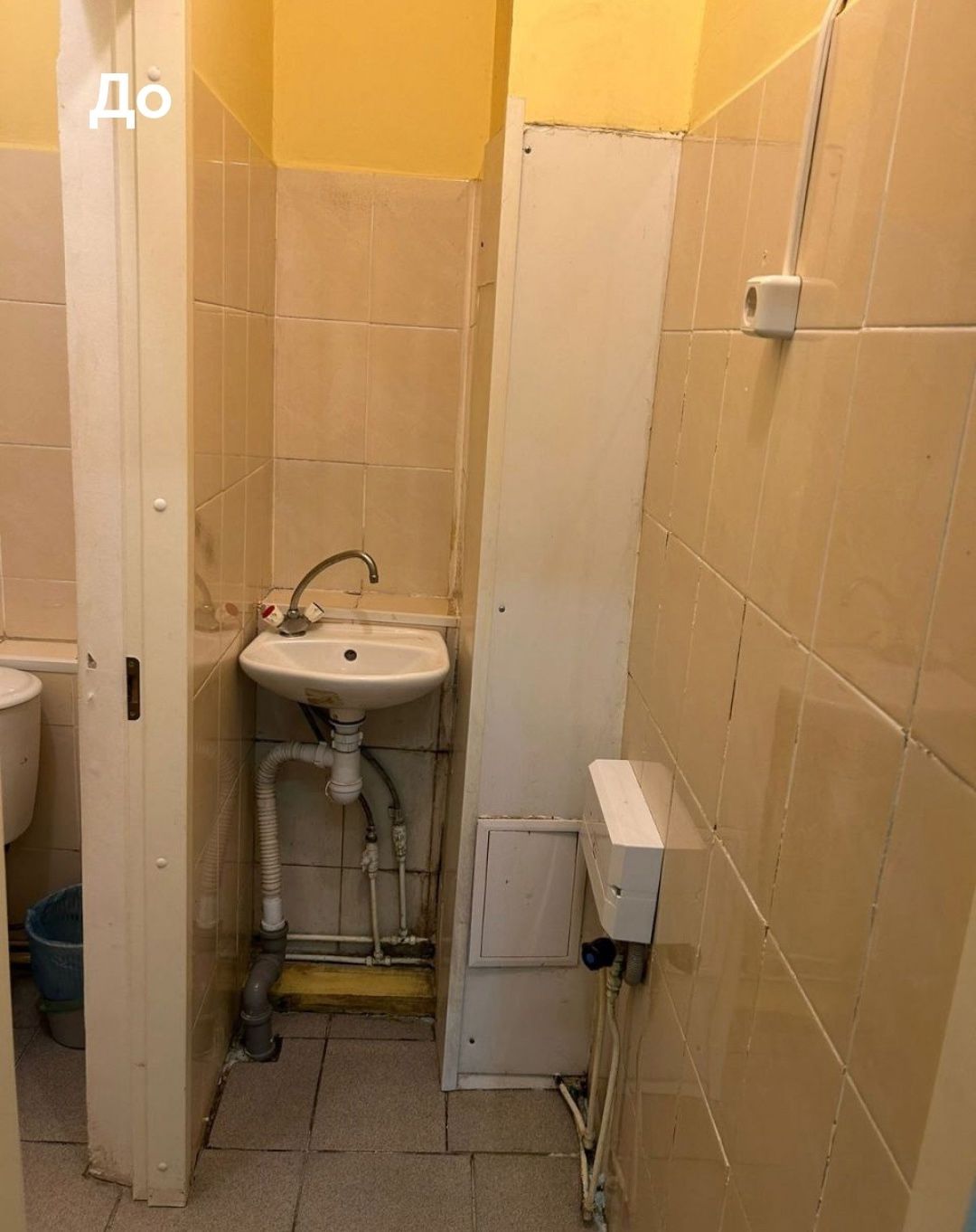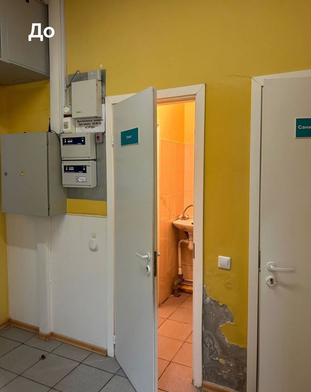 Во время ремонта починили санузел, обновили стены и полы, поменяли освещение. На фотографиях видно, как преобразилось здание.