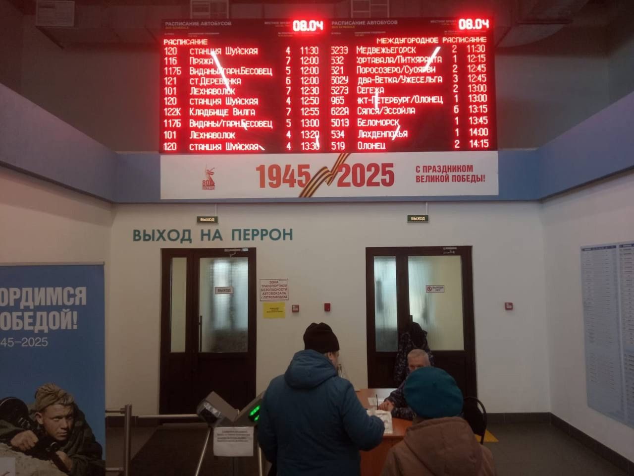 С приближением 80-летия Победы в Великой Отечественной войне «Карелавтотранс» украсил общественный транспорт и автовокзал праздничной символикой.