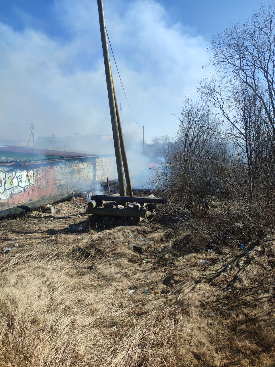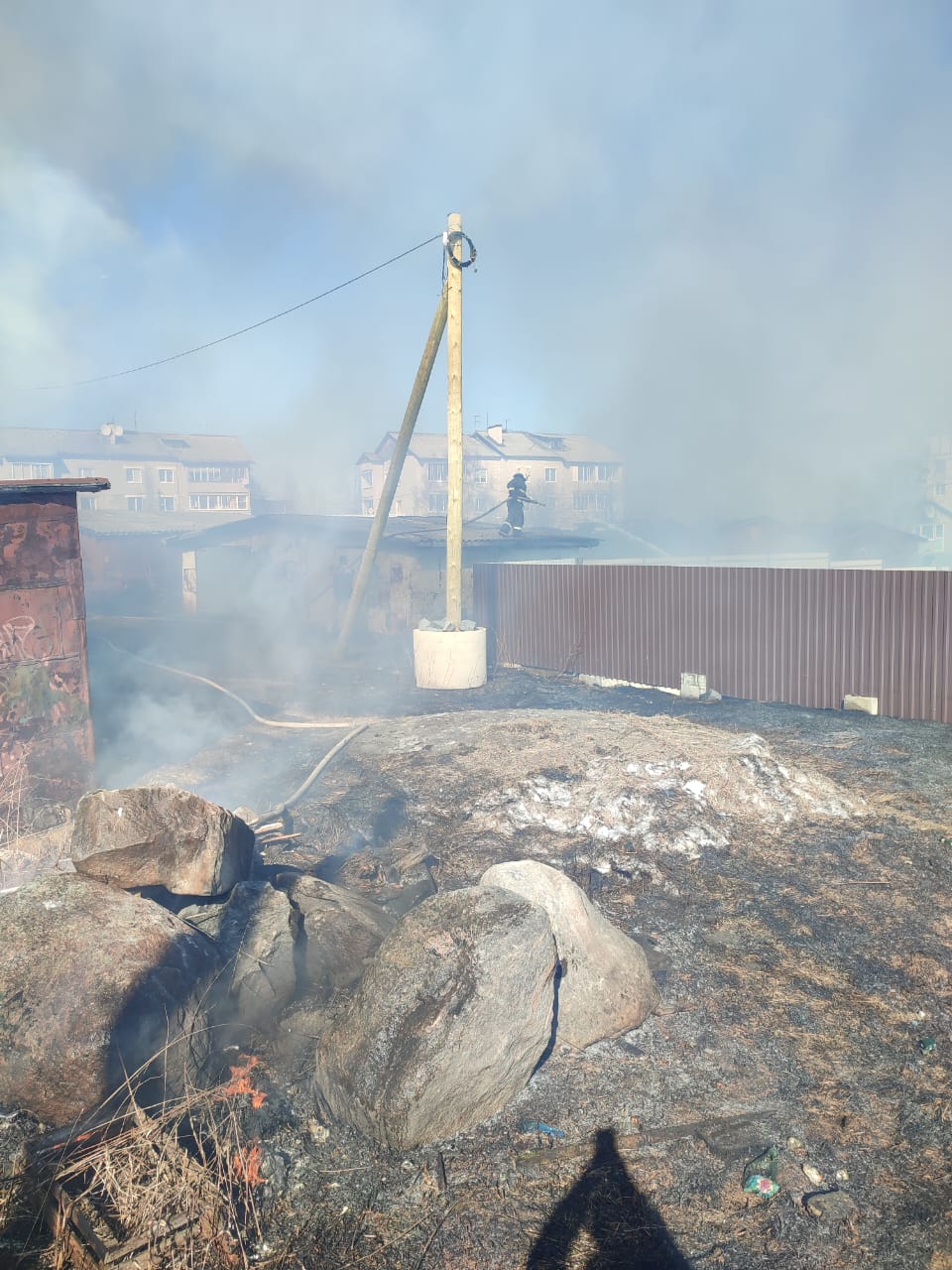 На месте происшествия выяснилось, что пламя с горящей сухой травы перекинулось на короб теплотрассы и гараж.