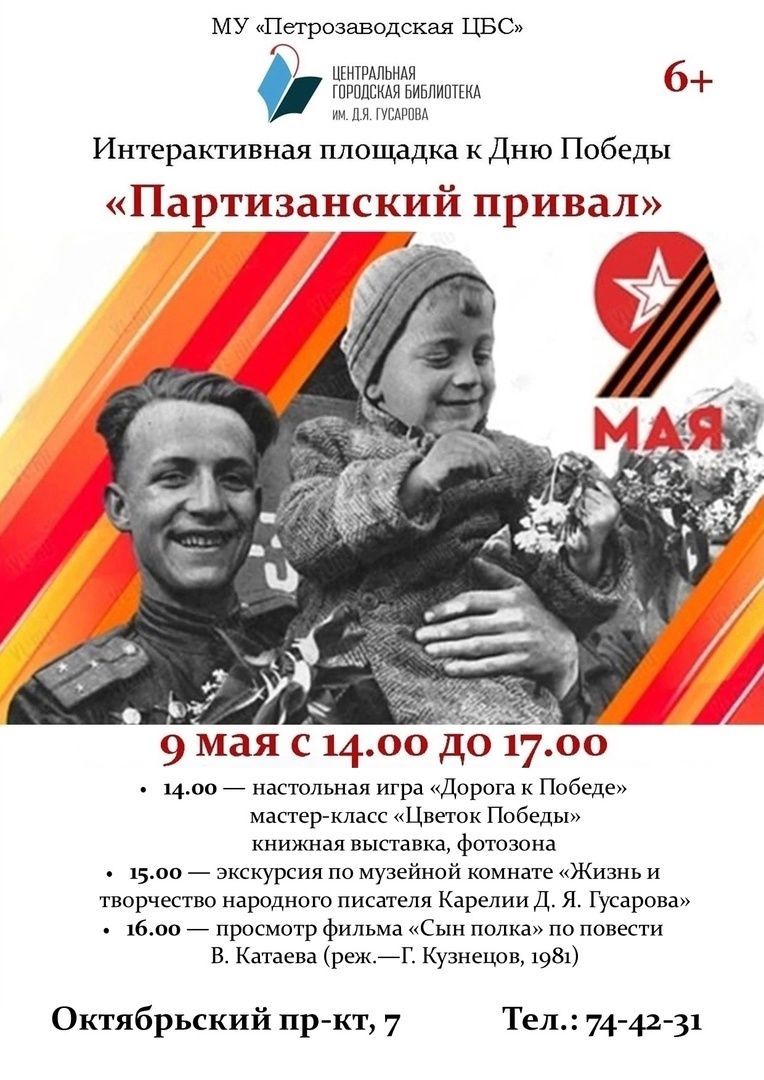 9 мая с 10:30 до 15:00 петрозаводчан ждут на площадке МУ «Петрозаводская ЦБС» у здания Национального театра Карелии (пр-кт Карла Маркса, д. 19).