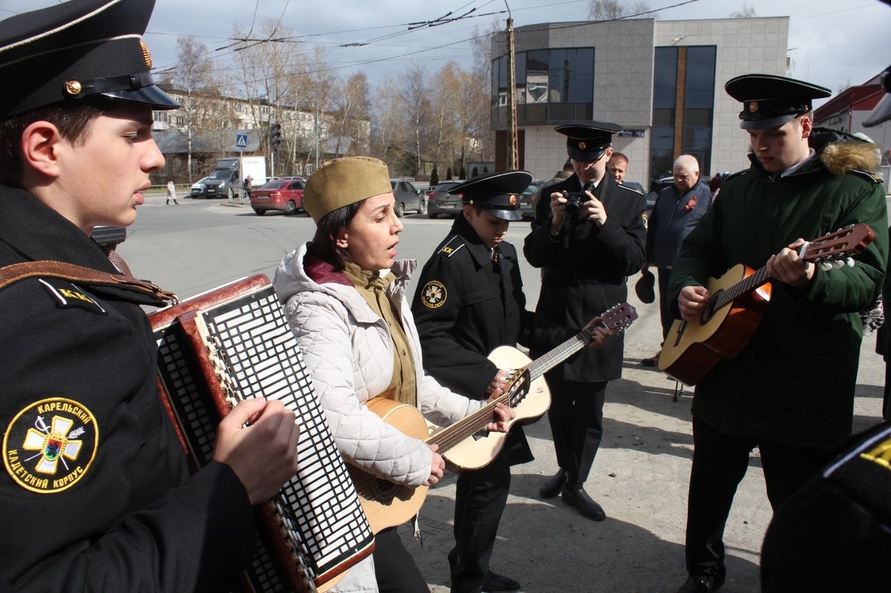 Патриотическую акцию организовало предприятие «Городской транспорт» совместно с Карельским кадетским корпусом имени Александра Невского. Для горожан исполнили военные песни и прочитали стихи.