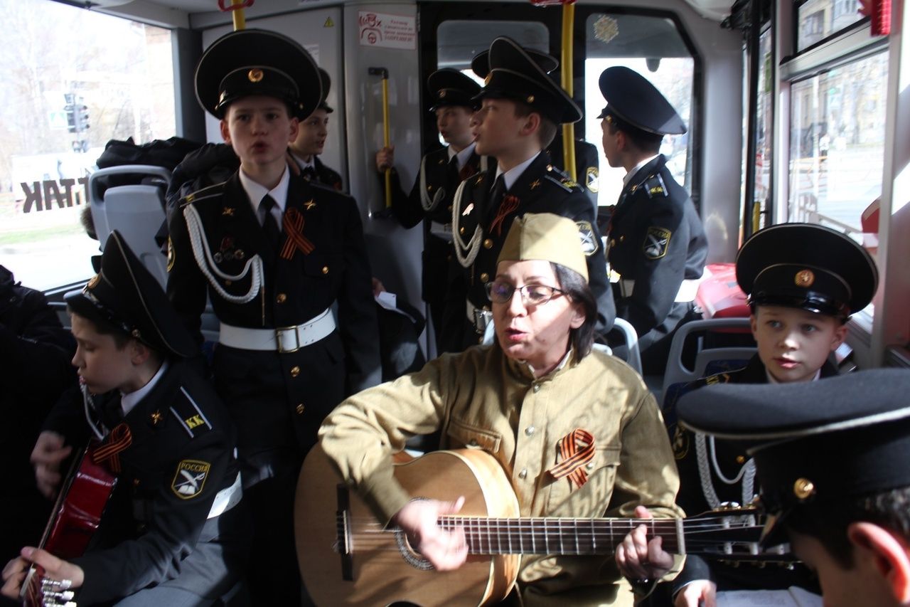 6 мая в Петрозаводске ходил троллейбус Победы. Юные кадеты пели песни военных лет и читали стихи. Пассажирам вручили георгиевские ленточки и журавликов.