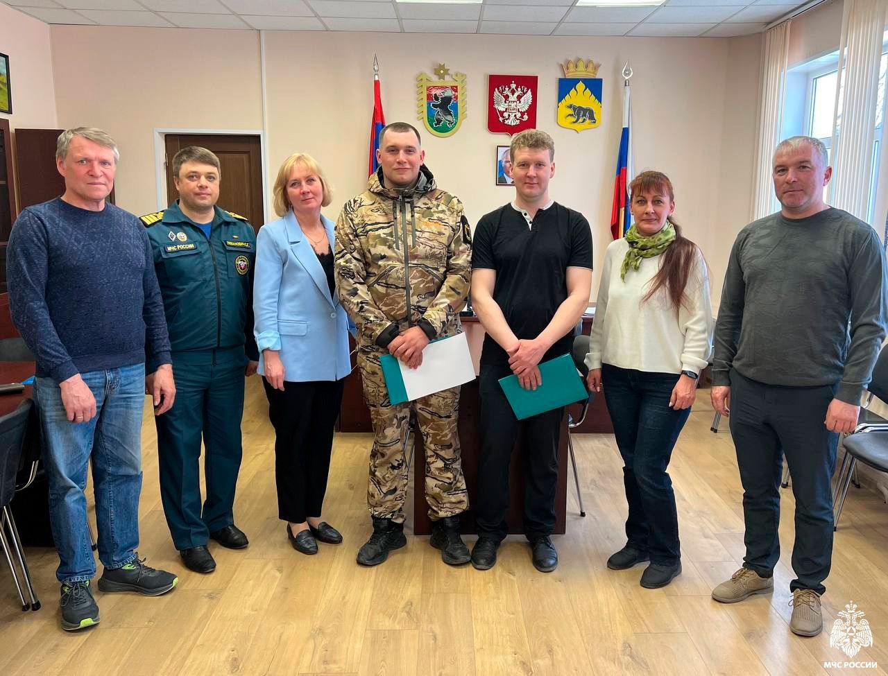Старший государственный инспектор по маломерным судам – руководитель инспекторского отделения ГИМС МЧС России в Медвежьегорске Сергей Леванович вручил Сидорову Руслану и Исакову Юрию благодарственные письма от МЧС Карелии и Администрации Медвежьегорского района за самоотверженные и слаженные действия при спасении четверых человек, провалившихся под лед.